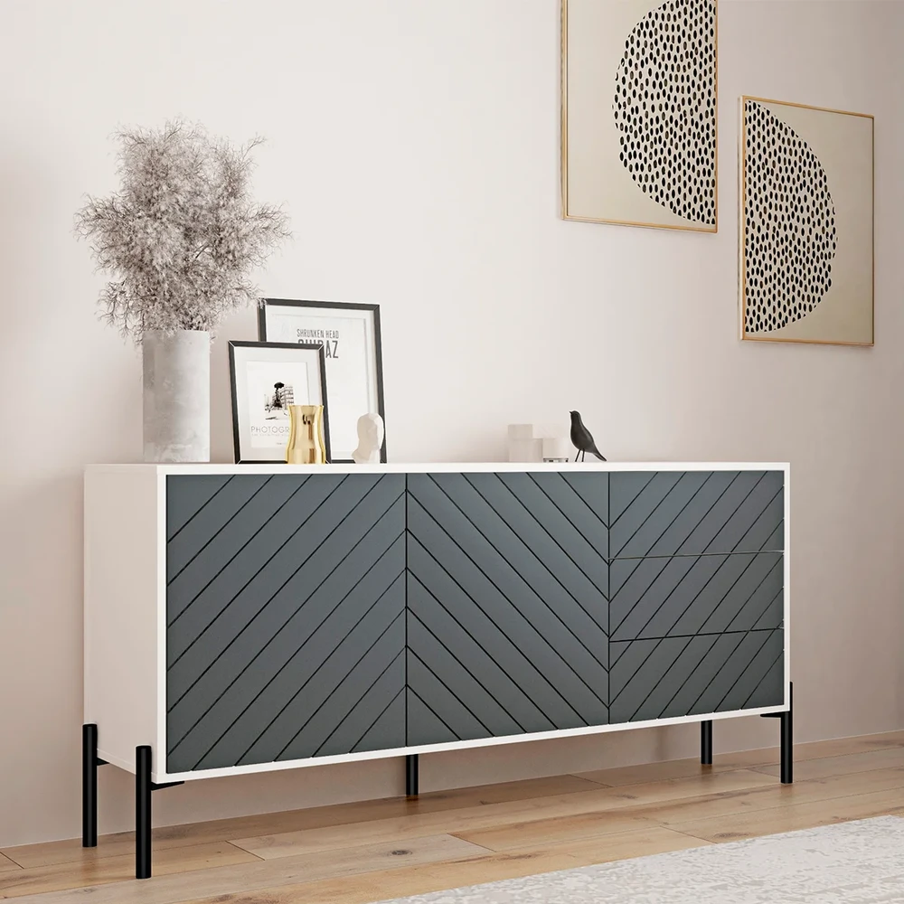 Комод з золотими металевими ніжками LION Амарант 168x40x76,5 см Бетон темний/Білий (LION-041960)