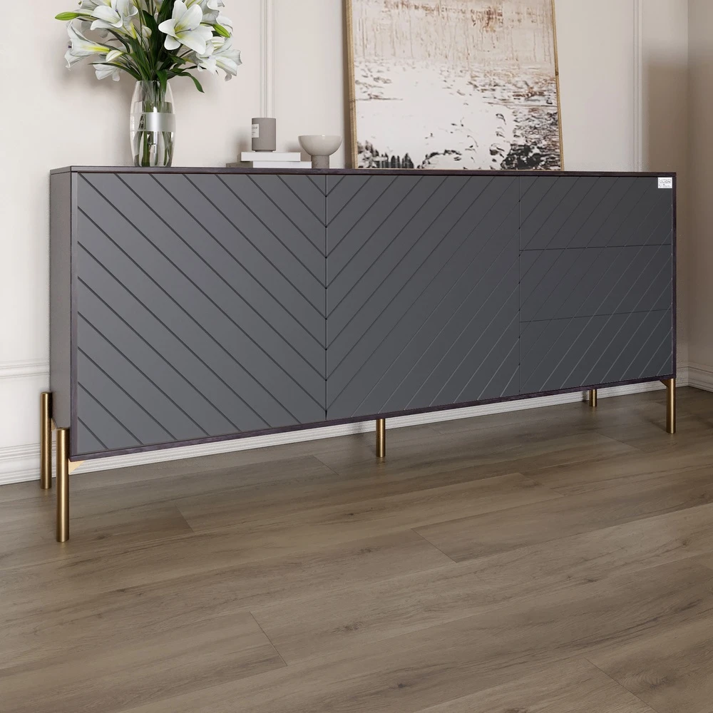 Комод з золотими металевими ніжками LION Амарант 168x40x76,5 см Бетон темний/Графітовий (LION-041946