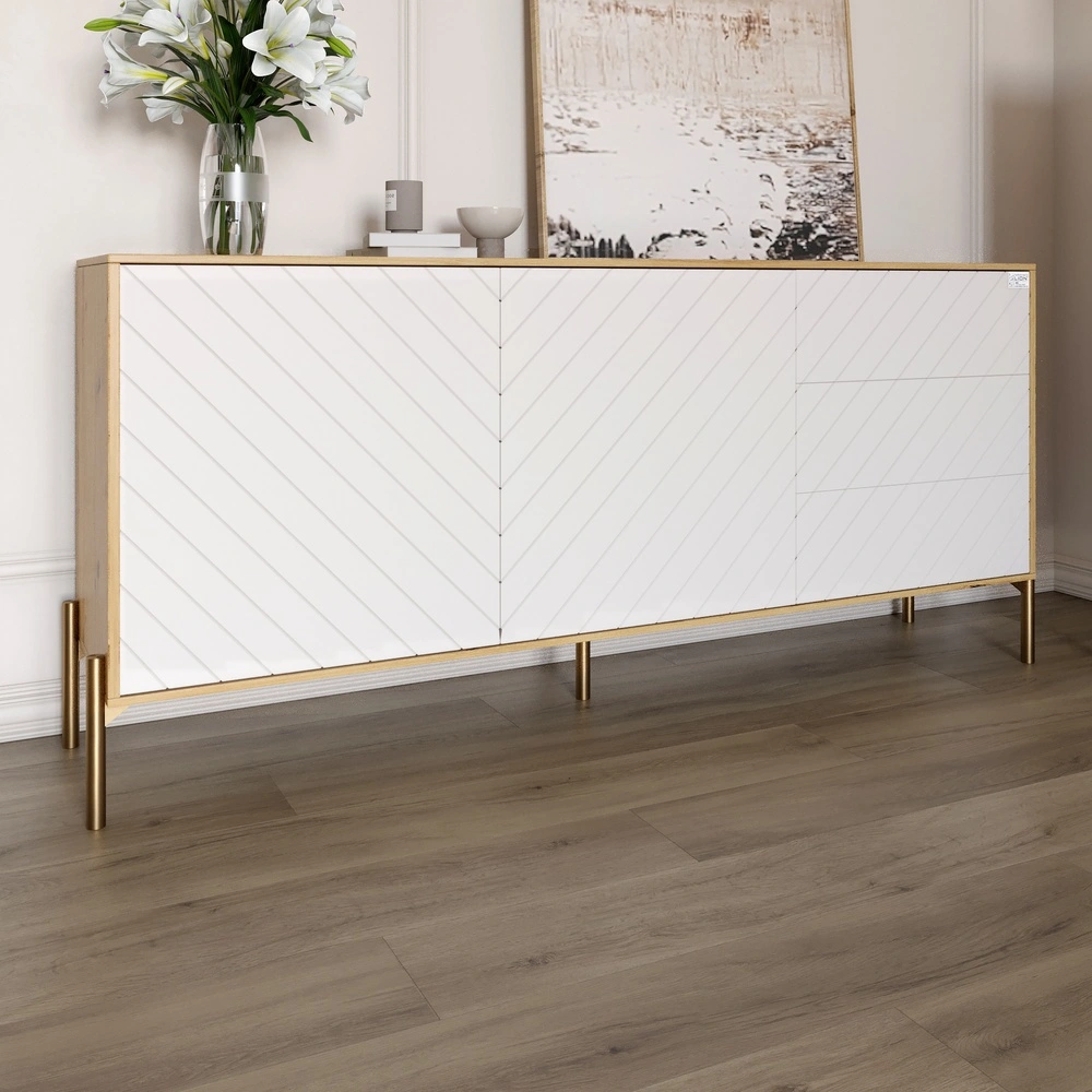 Комод з золотими металевими ніжками LION Амарант 168x40x76,5 см Дуб Артизан/Білий (LION-041956)