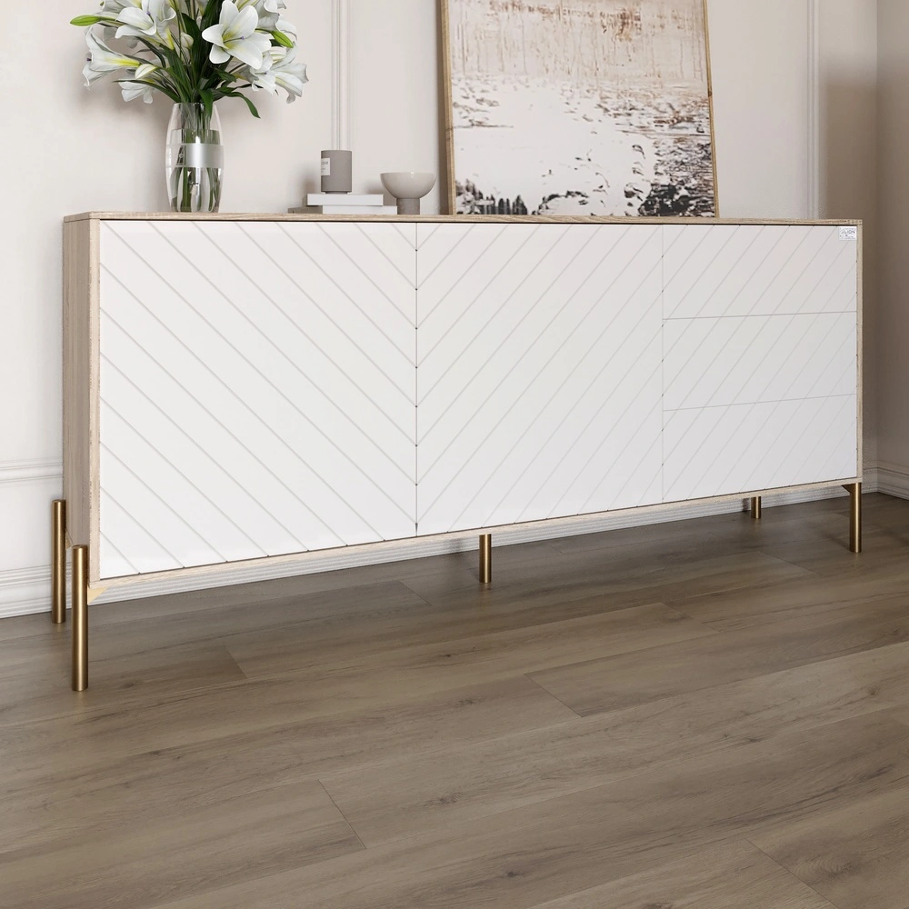 Комод з золотими металевими ніжками LION Амарант 168x40x76,5 см Дуб сонома/Білий (LION-041951)