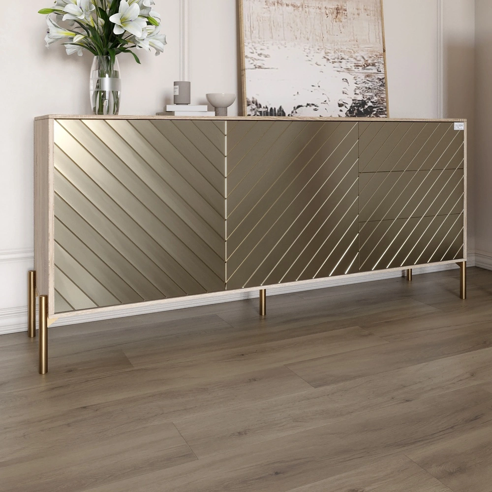 Комод з золотими металевими ніжками LION Амарант 168x40x76,5 см Дуб сонома/Перламутровий металік (LI