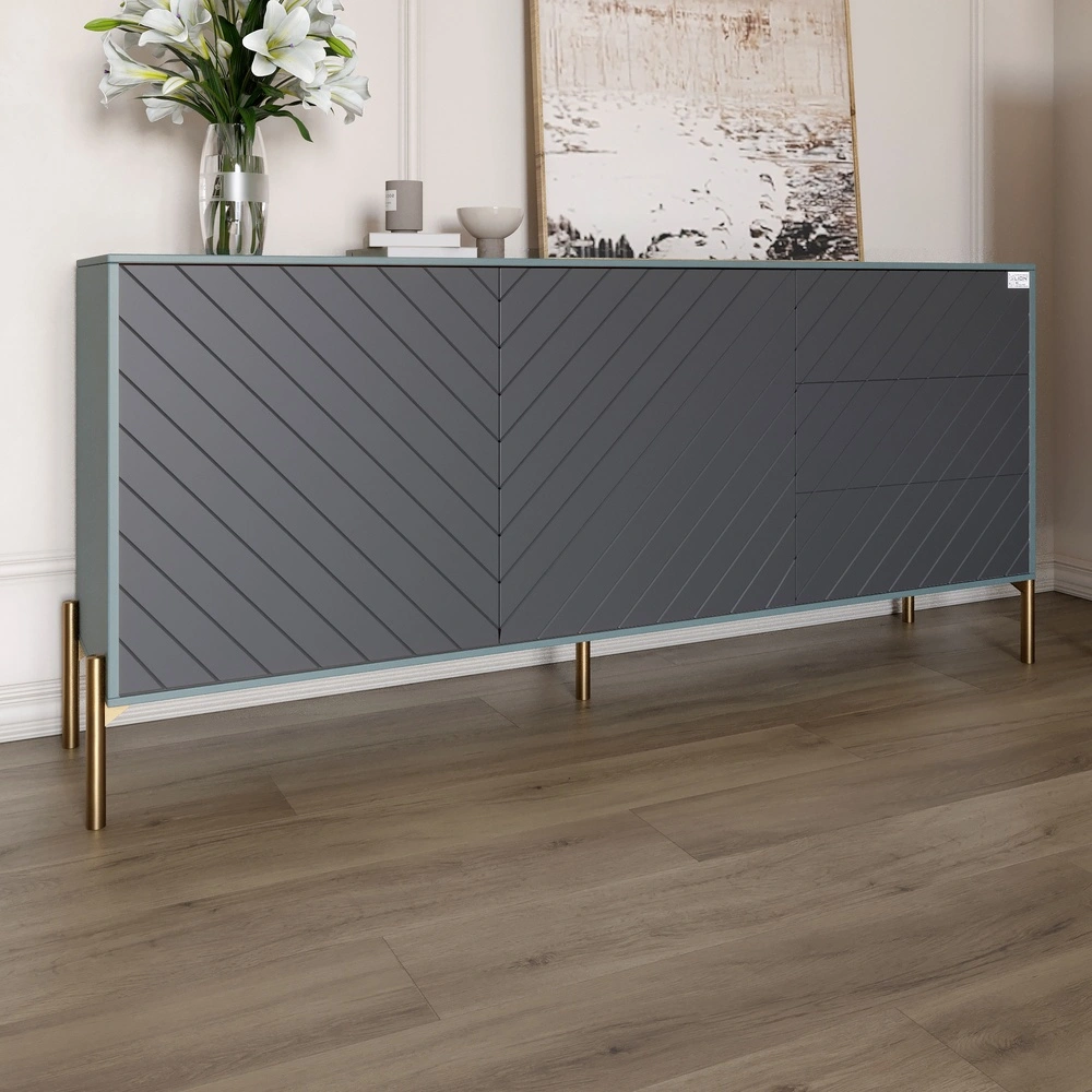 Комод з золотими металевими ніжками LION Амарант 168x40x76,5 см Граніт сірий/Графітовий (LION-041943