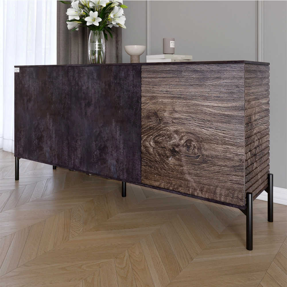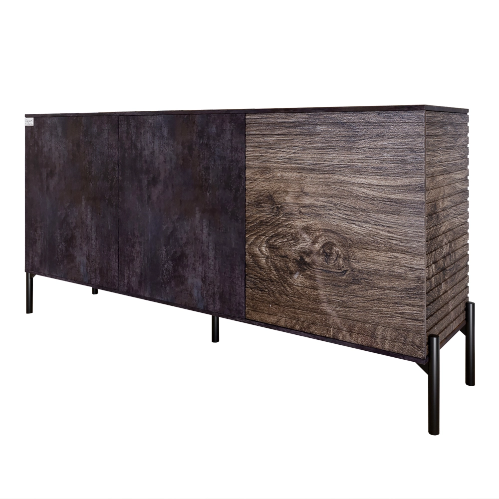 Комод закритий у вітальню на чорних металевих ніжках LION Грей 154x38x76,5 см Бетон темний/Дерево (L