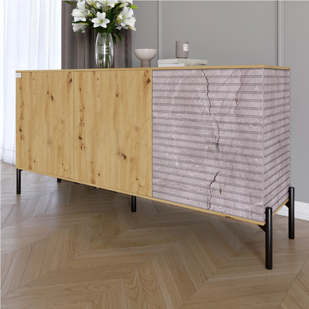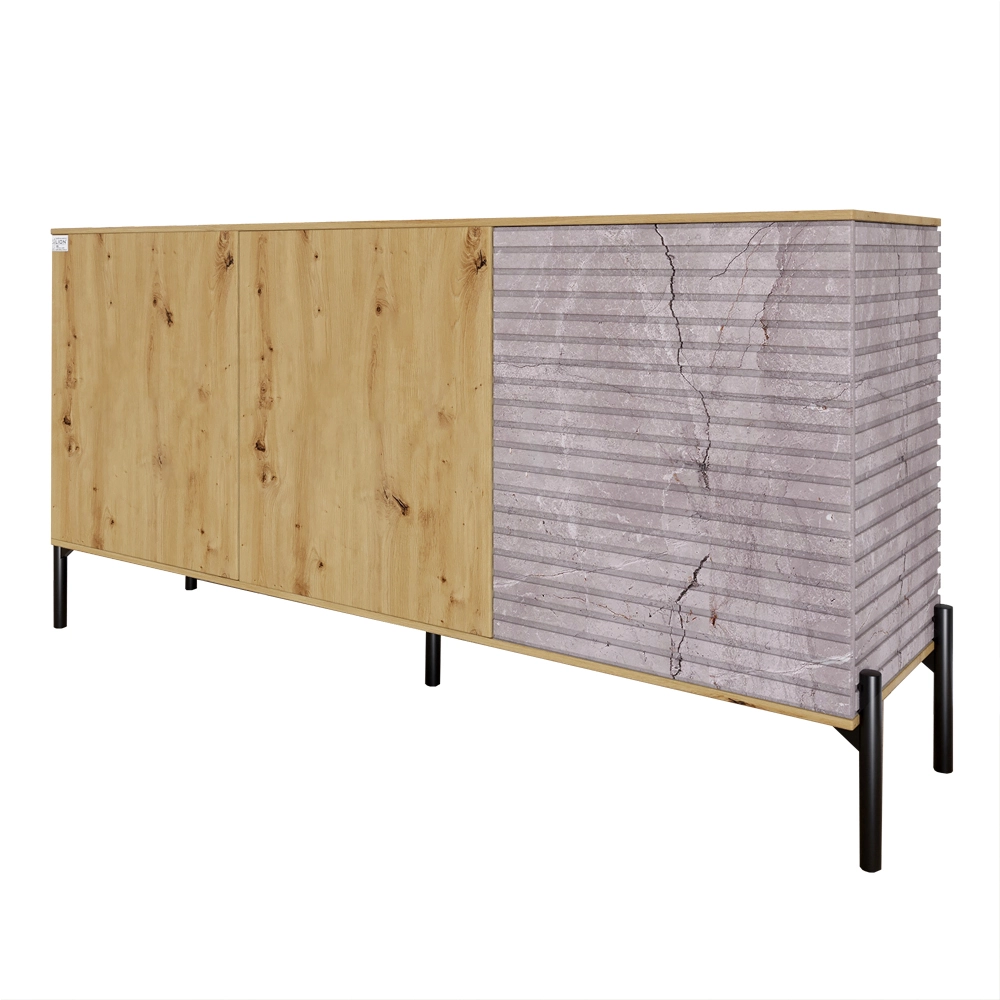 Комод закритий у вітальню на чорних металевих ніжках LION Грей 154x38x76,5 см Дуб Артизан/Камінь (LI