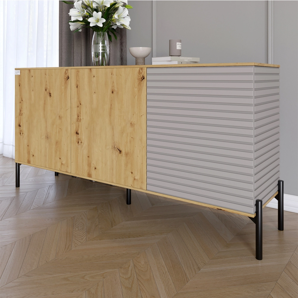 Комод закритий у вітальню на чорних металевих ніжках LION Грей 154x38x76,5 см Дуб Артизан/Кашемір (L