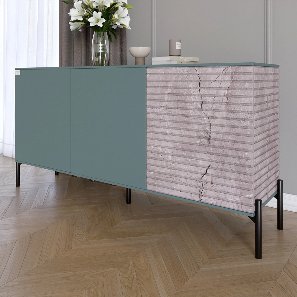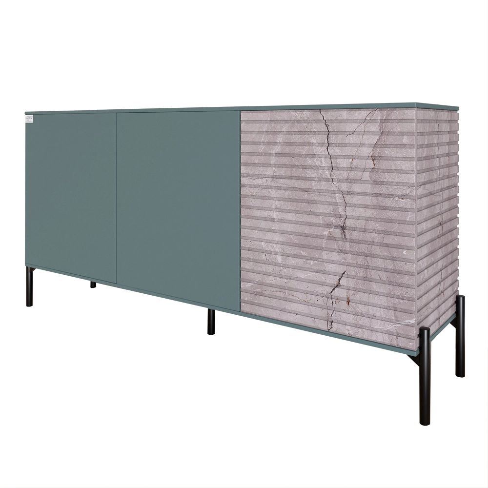 Комод закритий у вітальню на чорних металевих ніжках LION Грей 154x38x76,5 см Граніт сірий/Камінь (L