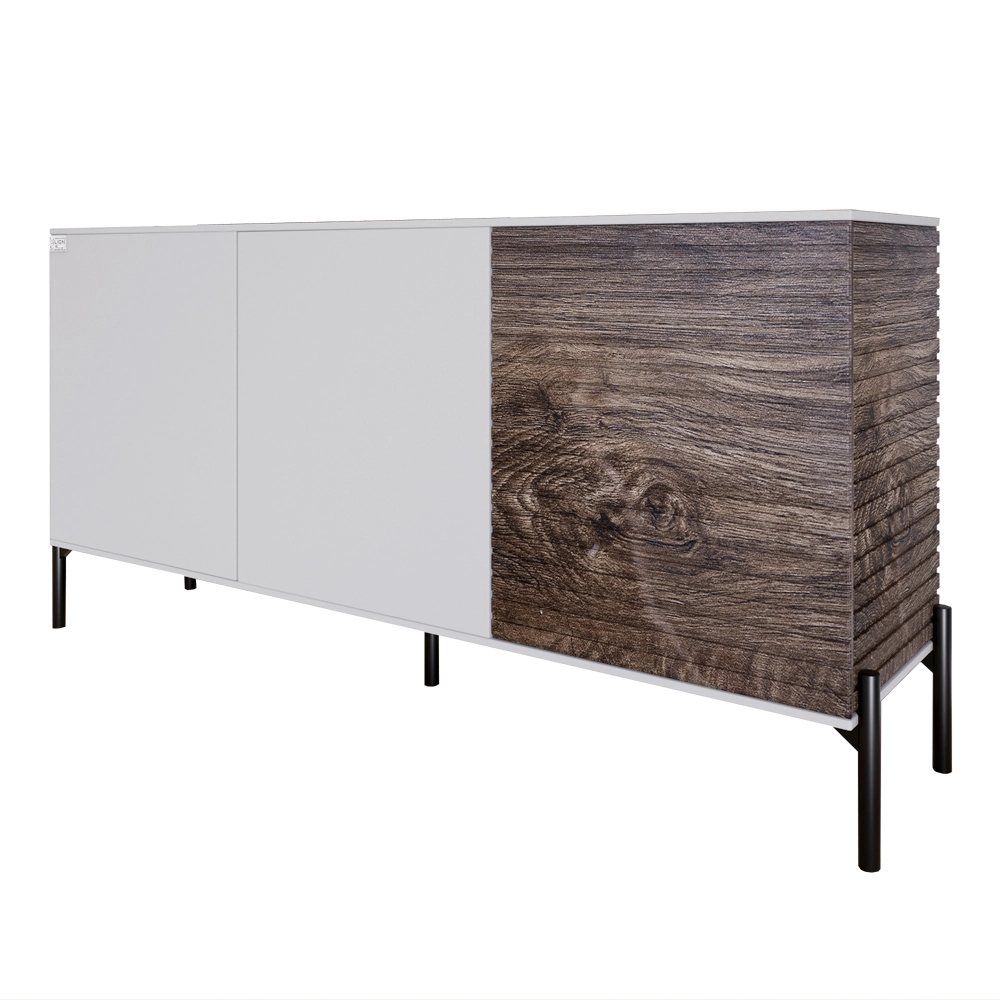 Комод закритий у вітальню на чорних металевих ніжках LION Грей 154x38x76,5 см Німфея Альба (білий)/Д