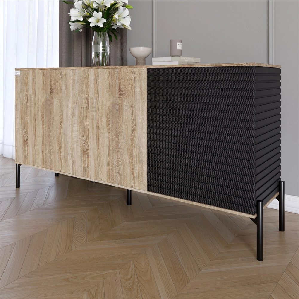 Комод закритий у вітальню на чорних металевих ніжках LION Грей Дуб сонома/Асфальт 1540x380x765 (LION