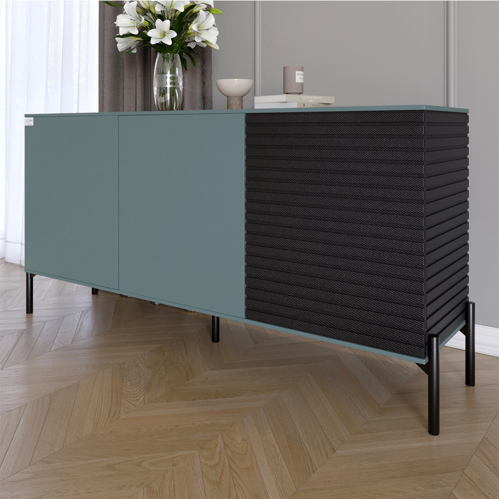 Комод закритий у вітальню на чорних металевих ніжках LION Грей Граніт сірий/Асфальт 1540x380x765 (LI