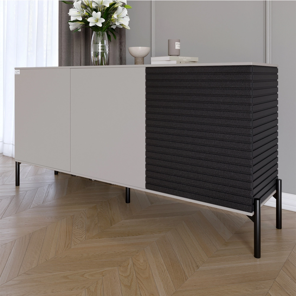 Комод закритий у вітальню на чорних металевих ніжках LION Грей Кашемір/Асфальт 1540x380x765 (LION-04