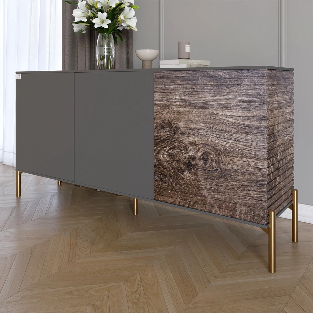 Комод закритий у вітальню на золотих металевих ніжках LION Грей 154x38x76,5 см Антрацит/Дерево (LION