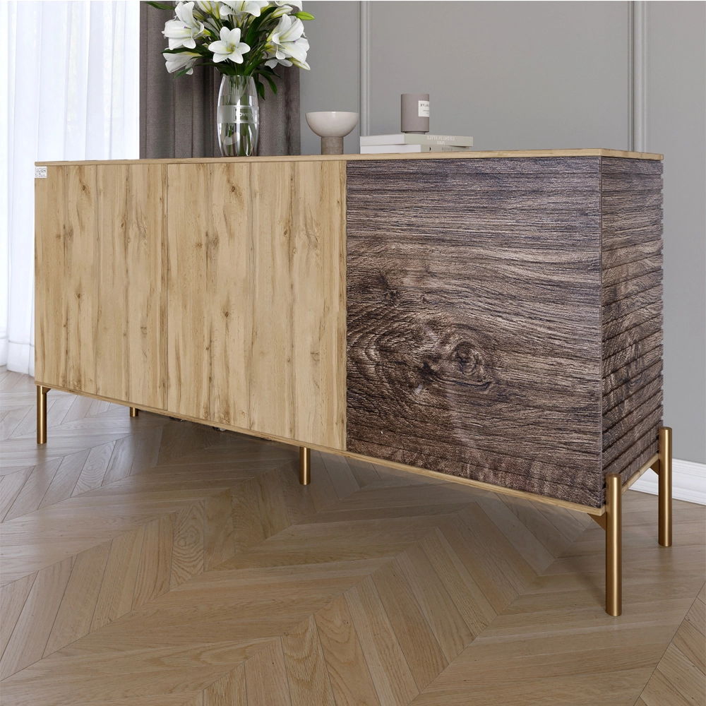 Комод закритий у вітальню на золотих металевих ніжках LION Грей 154x38x76,5 см Дуб Аппалачі/Дерево (