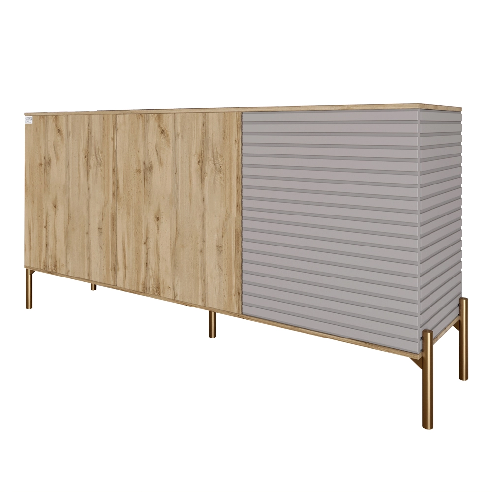 Комод закритий у вітальню на золотих металевих ніжках LION Грей 154x38x76,5 см Дуб Аппалачі/Кашемір