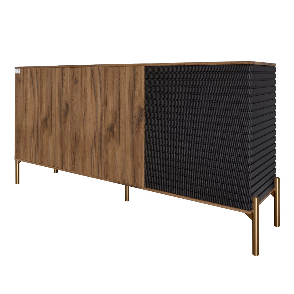 Комод закритий у вітальню на золотих металевих ніжках LION Грей 154x38x76,5 см Дуб Ліворно/Асфальт (