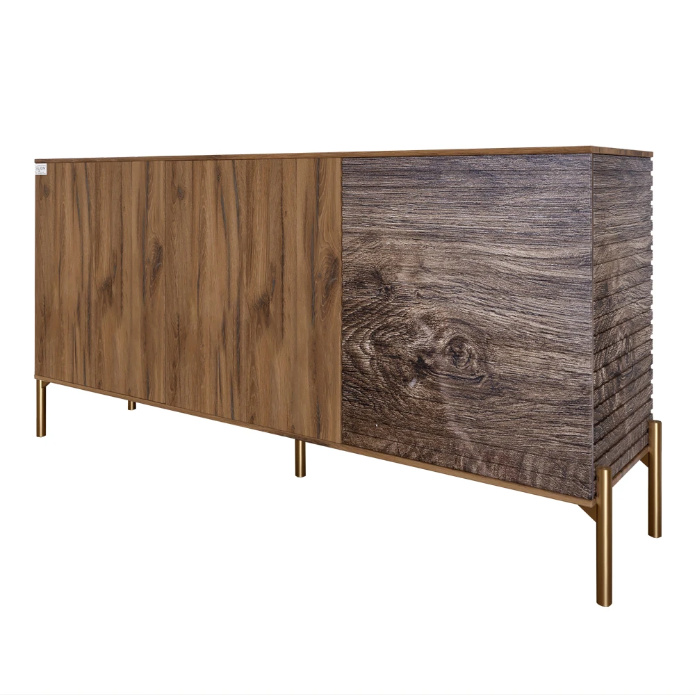 Комод закритий у вітальню на золотих металевих ніжках LION Грей 154x38x76,5 см Дуб Ліворно/Дерево (L