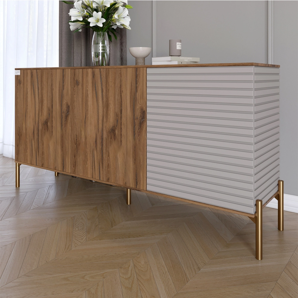 Комод закритий у вітальню на золотих металевих ніжках LION Грей 154x38x76,5 см Дуб Ліворно/Кашемір (