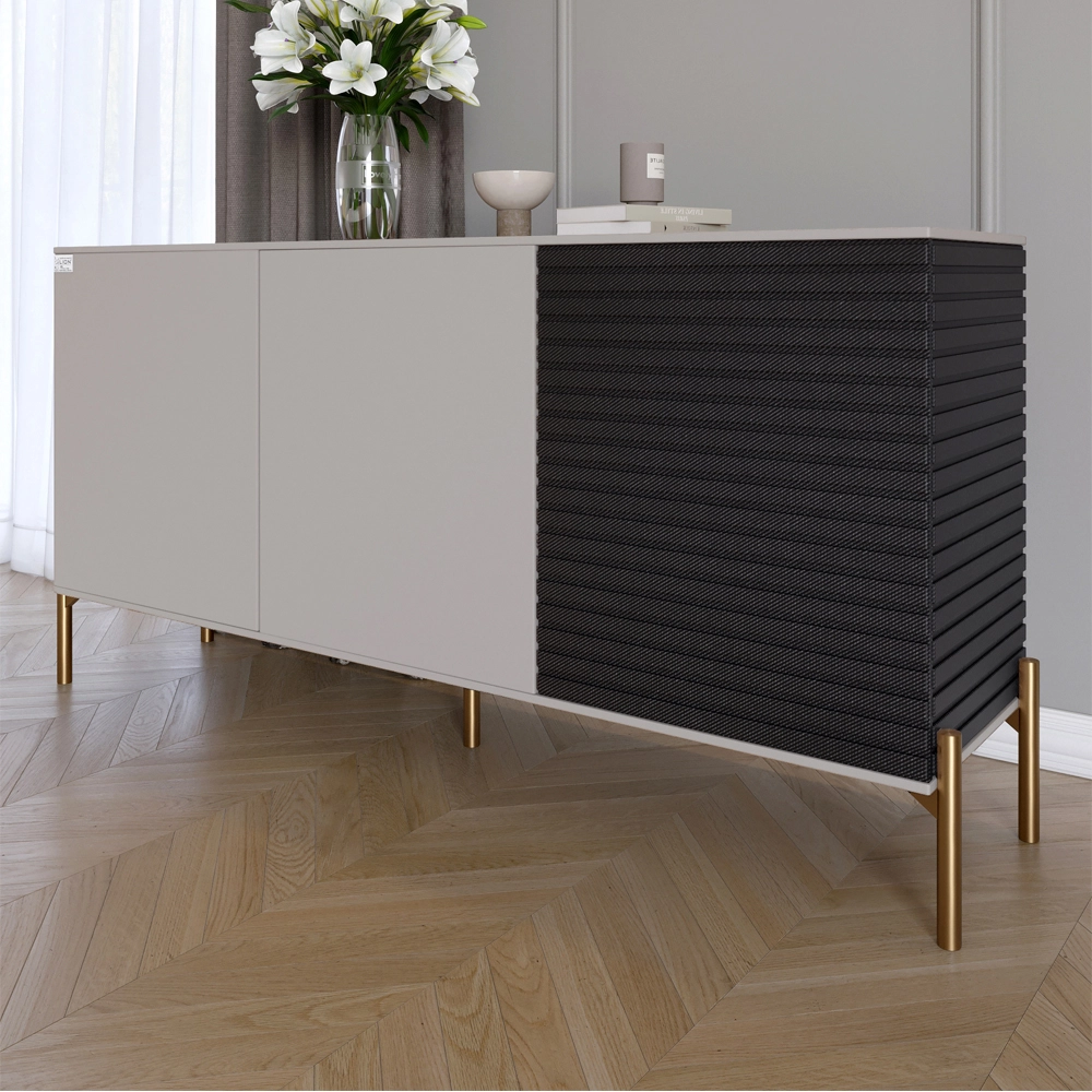 Комод закритий у вітальню на золотих металевих ніжках LION Грей 154x38x76,5 см Кашемір/Асфальт (LION