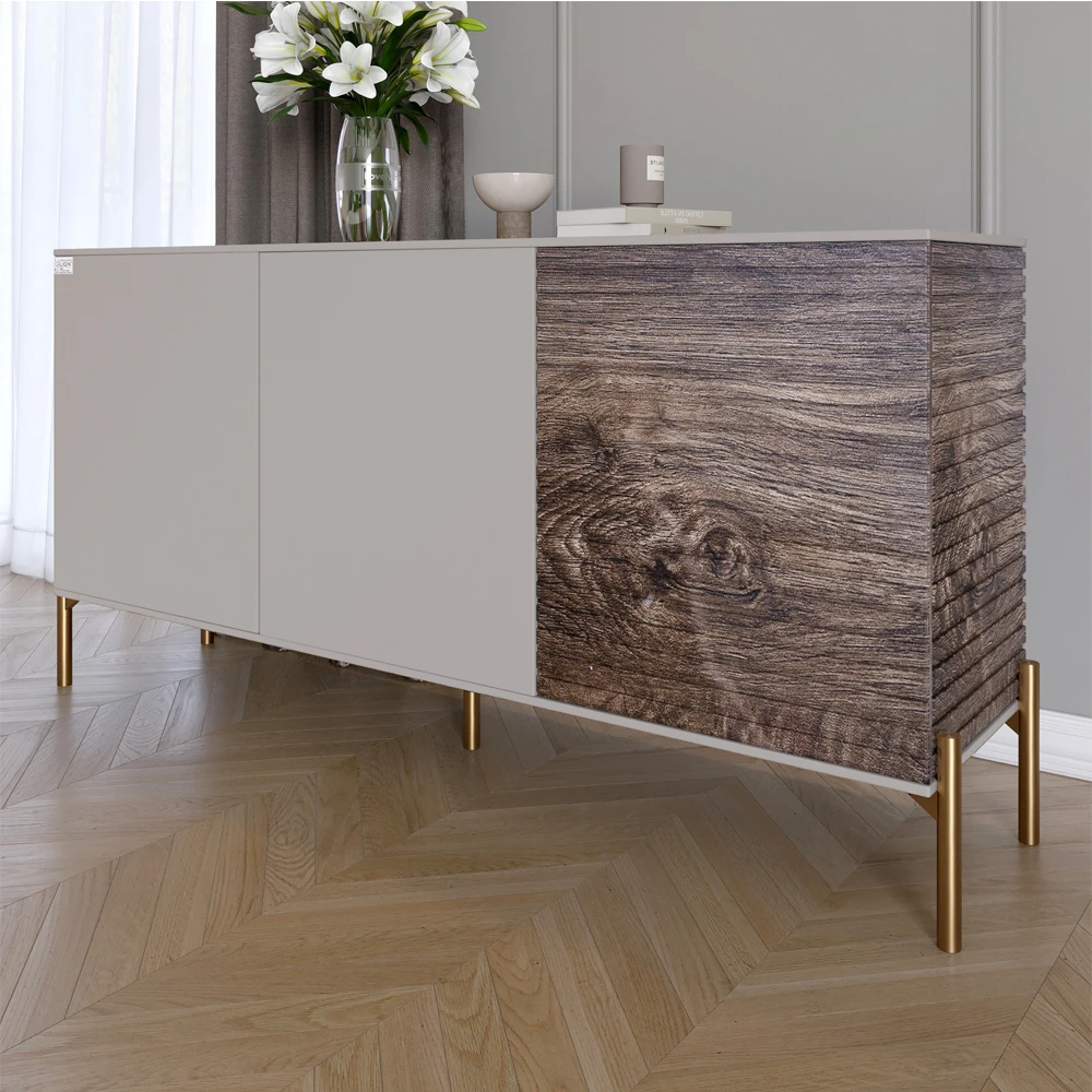 Комод закритий у вітальню на золотих металевих ніжках LION Грей 154x38x76,5 см Кашемір/Дерево (LION-
