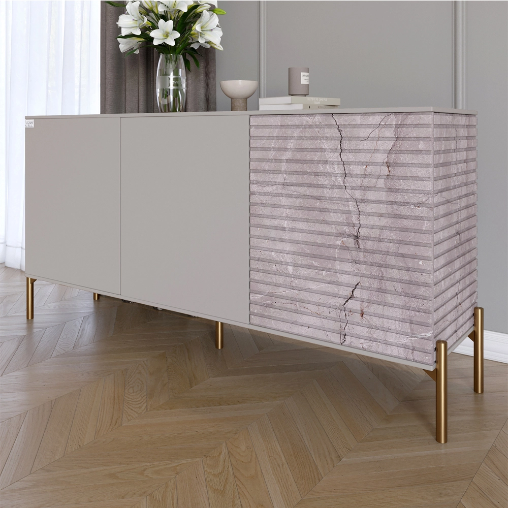 Комод закритий у вітальню на золотих металевих ніжках LION Грей 154x38x76,5 см Кашемір/Камінь (LION-