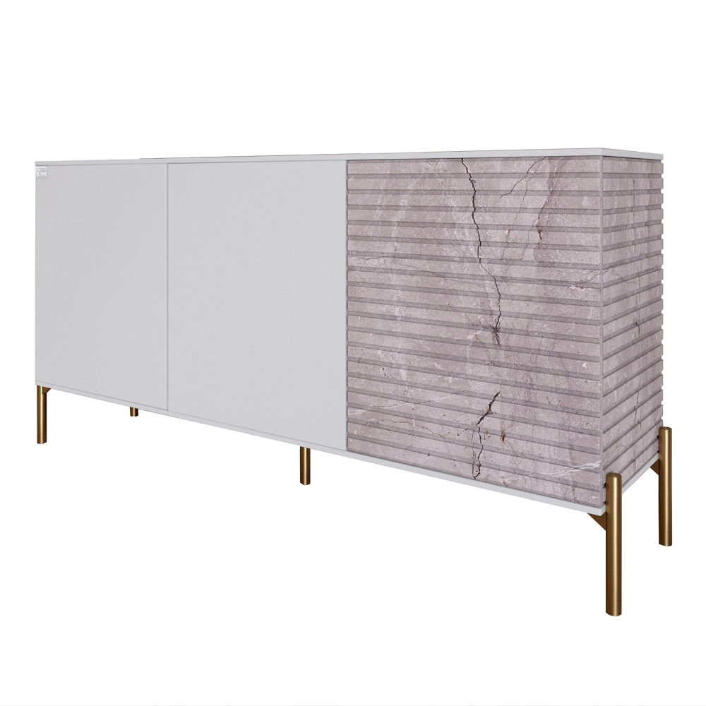 Комод закритий у вітальню на золотих металевих ніжках LION Грей 154x38x76,5 см Німфея Альба (білий)/