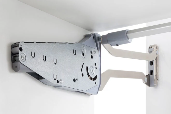 - Підйомник FREE UP розроблений для паралельного підйому фасаду вверх, не потребує місця перед шафою.
