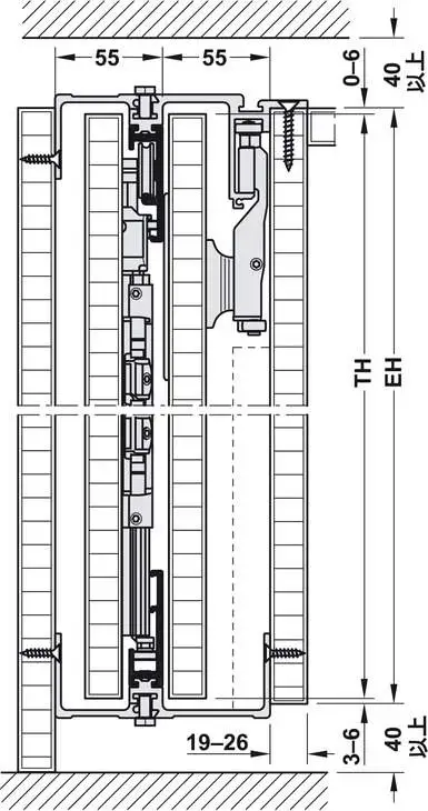 Ми рекомендуємо використовувати зміцнюючий профіль для подвійних систем, висотою дверного полотна макс. до 2,800 мм без центральної панелі.