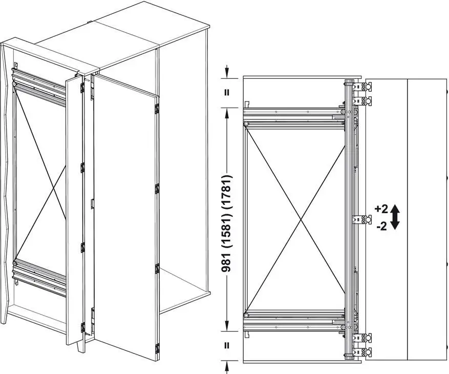 Комплект фурнітури Slido F-Park72 60B для 2-х дверних полотен вага: 60кг висота: 2200-2700мм глибина