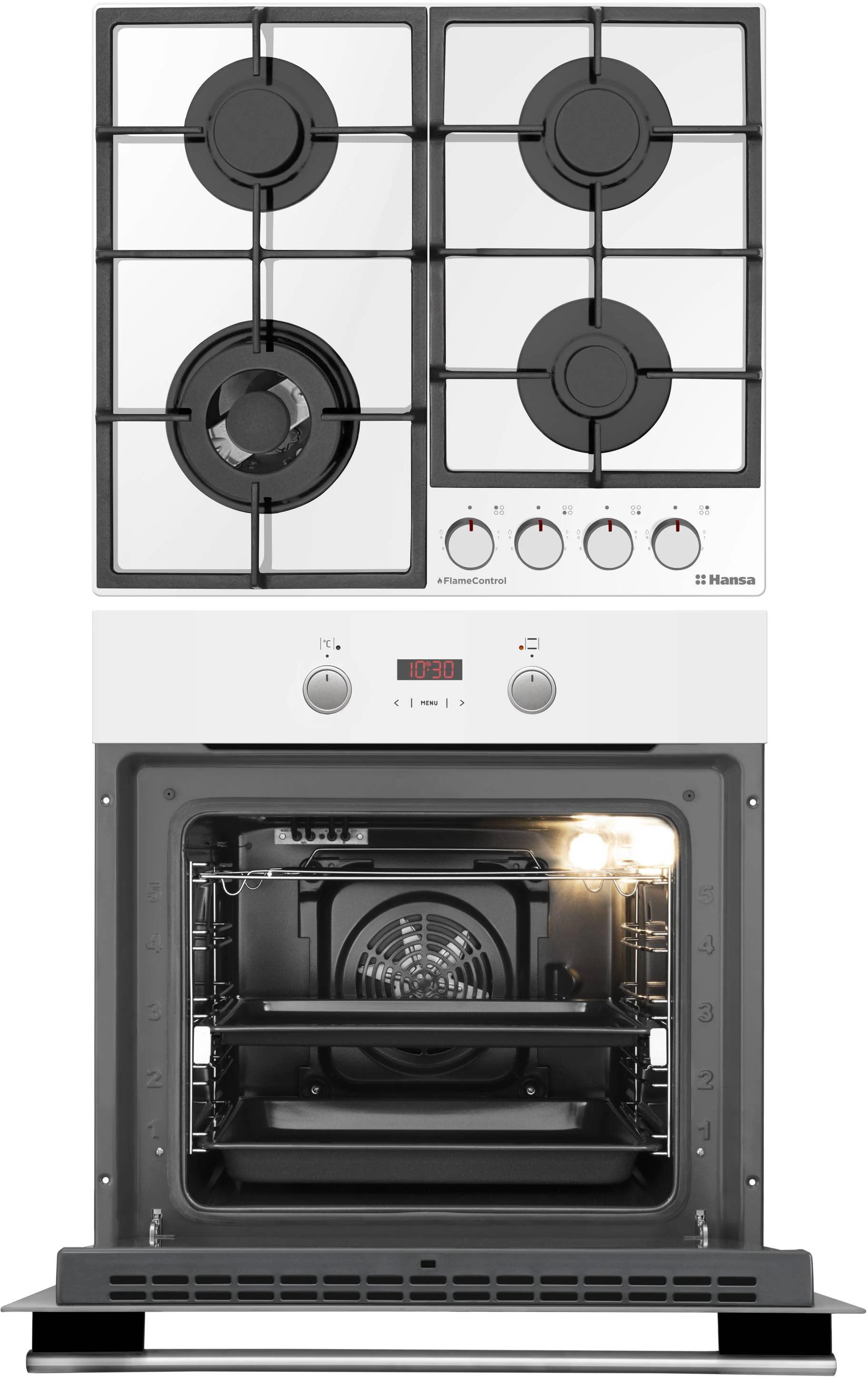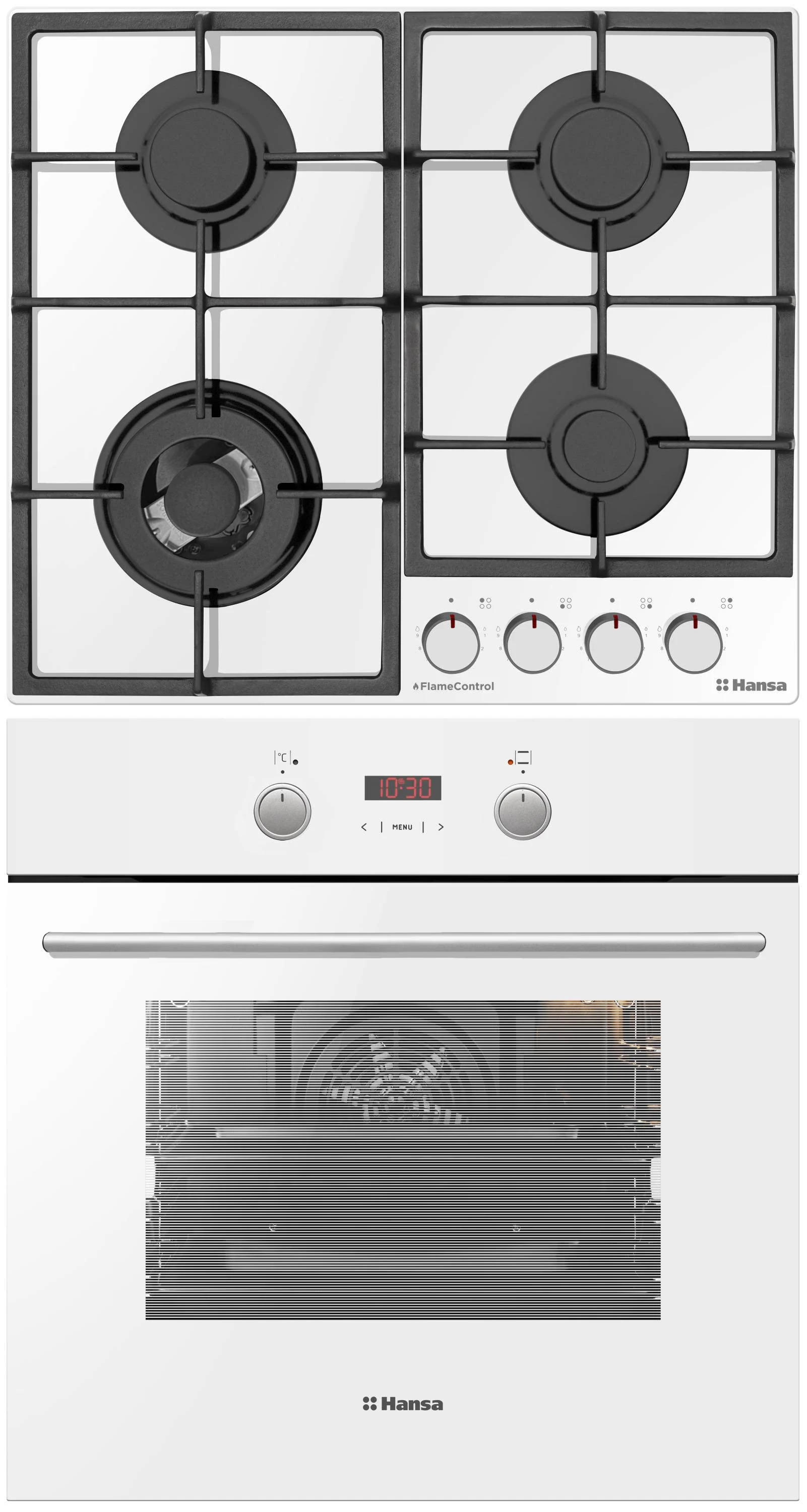 Комплект Hansa (духовка електрична + поверхня газ на склі), білий