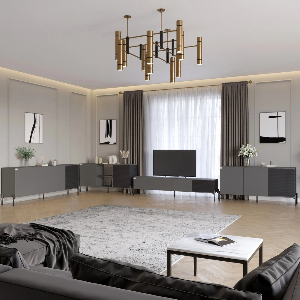 Комплект мебели для гостиной LION Грей станет настоящим украшением вашего интерьера, сочетая элегантный дизайн и практичность. Благодаря использованию высококачественного ЛДСП SWISS KRONO, вы получаете мебель, которая выдержит испытание временем, сохраняя свой привлекательный вид. Металлические ножки не только придают современный стиль, но и обеспечивают стабильность конструкции, что делает ее идеальной для любого пространства.