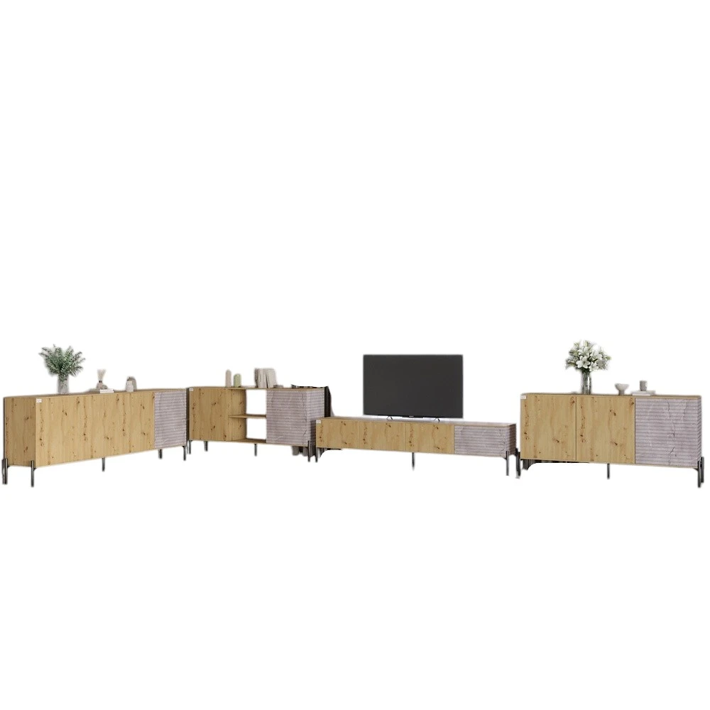 Комплект мебели для гостиной LION Грей станет идеальным решением для тех, кто ценит эстетику и удобство. Благодаря стильному дизайну и модульной структуре этот комплект легко адаптируется к любому пространству, подчеркивая современный стиль вашего дома. Металлические ножки не только придают конструкции легкости, но и обеспечивают ее стабильность, а рельефные детали на фасаде добавляют оригинальности и динамики в интерьер. Безусловно, вы оцените его долговечность и сохранение эстетичного вида в течение многих лет. Минималистичный дизайн без внешних ручек создает лаконичный вид, а 2 мм кромка защищает края от повреждений и придает завершенность. Выберите LION Грей для создания комфортного и стильного пространства в вашем доме!