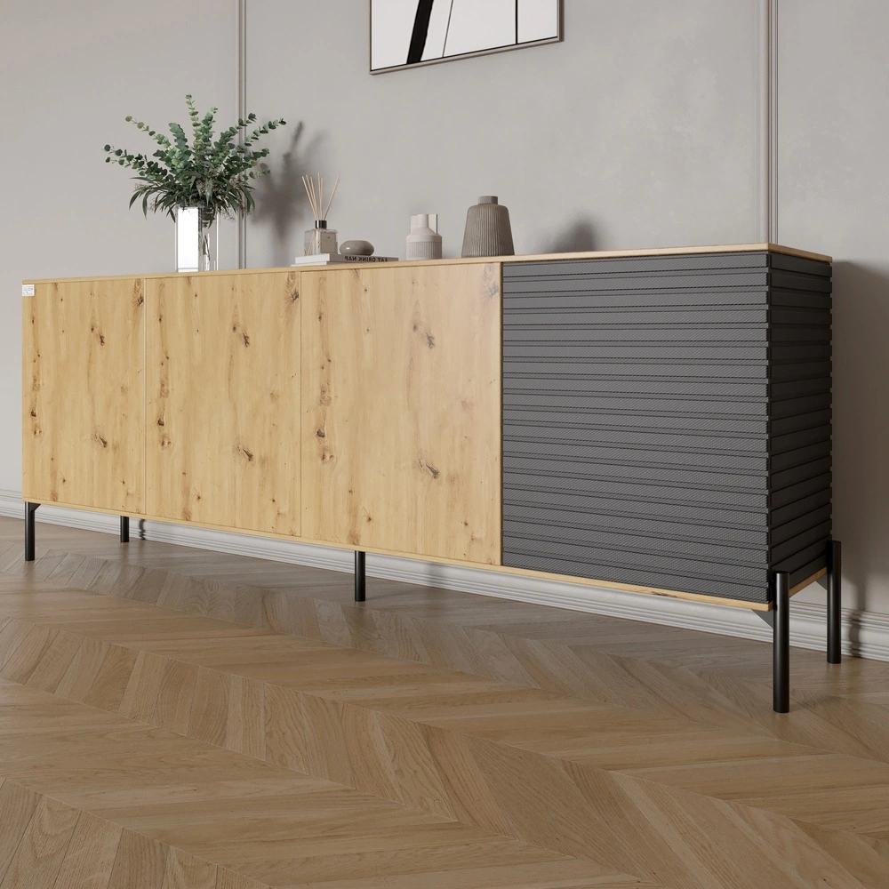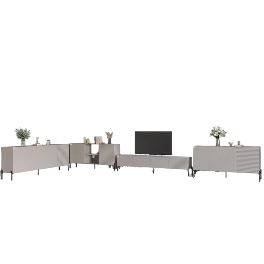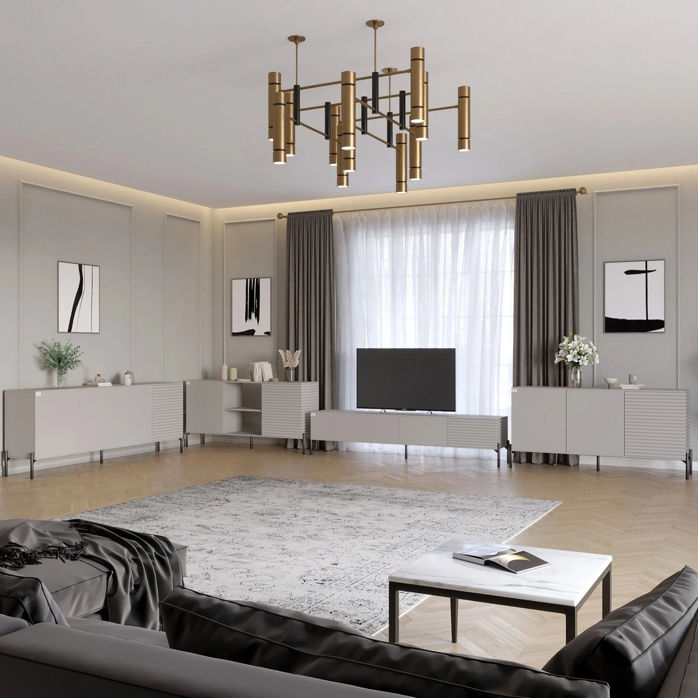 Комплект мебели для гостиной LION Грей – это идеальное сочетание стиля и функциональности, которое придаст вашему дому изысканности. Благодаря современным металлическим ножкам этот комплект обеспечивает не только надежность, но и легкость в использовании. Рельефные детали на фасаде придают оригинальности, а модульная структура позволяет легко адаптировать мебель под любое помещение, создавая уникальный интерьер в стиле минимализм, лофт или модерн. Лаконичная фурнитура без наружных ручек подчеркивает элегантность, а кромка 2 мм защищает края изделий, сохраняя их привлекательный вид на многие годы. Выберите LION Грей для создания стильного и функционального пространства в вашем доме!