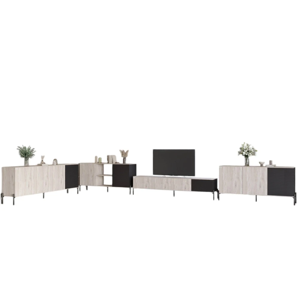 Комплект мебели для гостиной LION Грей станет воплощением комфорта и элегантности в вашем доме. Благодаря стильному дизайну и современным материалам этот комплект не только украсит ваше пространство, но и обеспечит длительное использование. Металлические ножки придают конструкции стабильности, а рельефные детали фасада придают оригинальности и динамики вашему интерьеру, делая его уникальным.