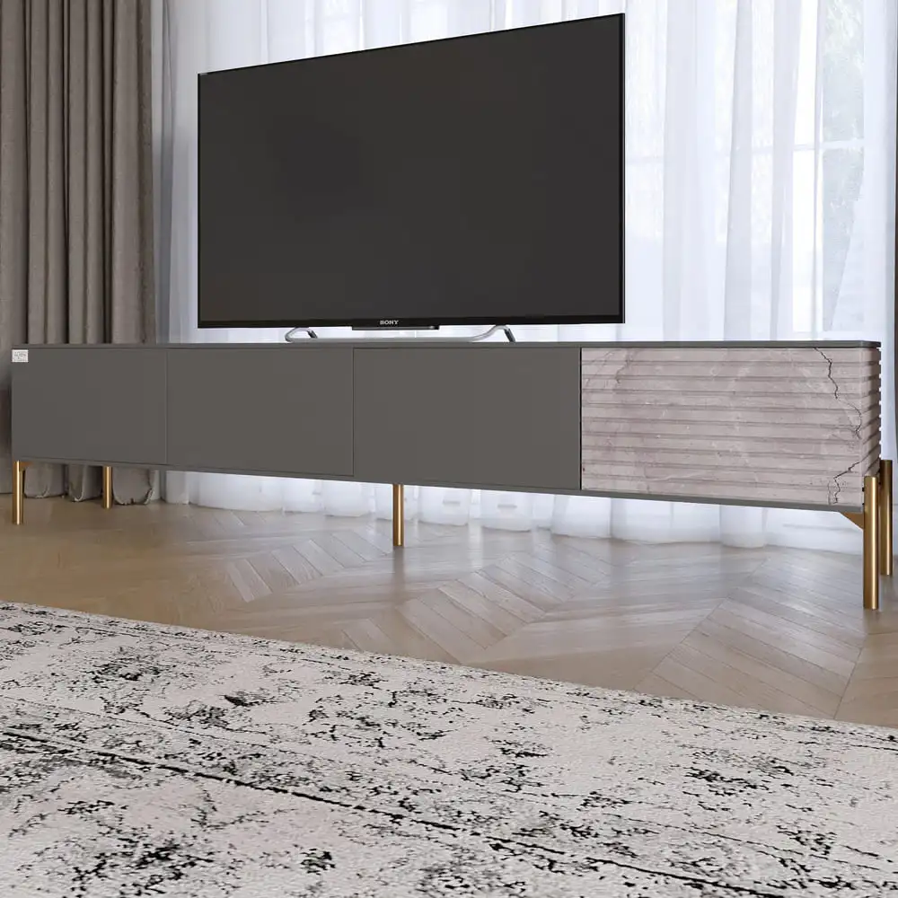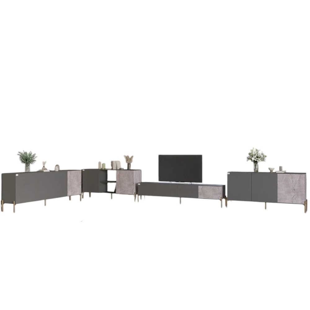 Комплект модульний для вітальні LION Грей 4 елементи з золотими металевими ніжками Антрацит/Камінь (