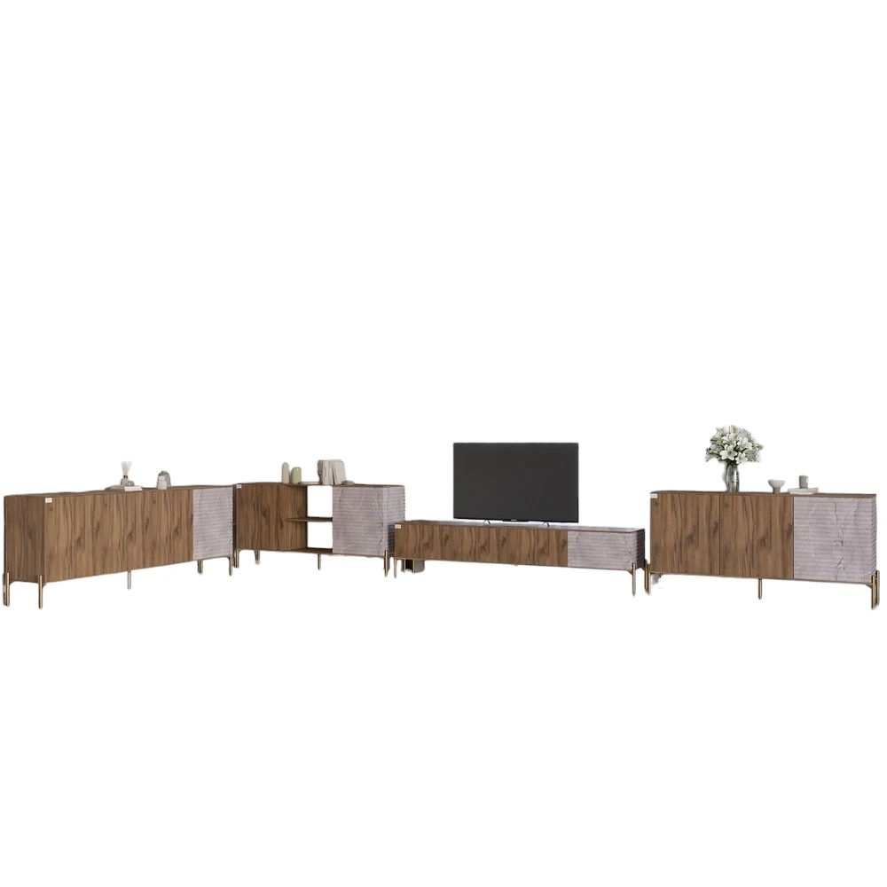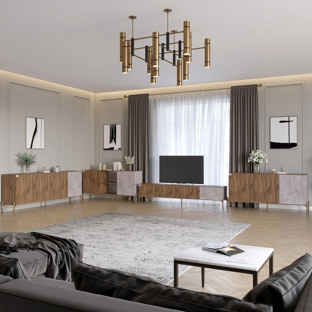Комплект мебели для гостиной LION Грей – это идеальное сочетание современного дизайна и практичности. Благодаря стильному внешнему виду и функциональности он станет гармоничным дополнением любого интерьера. Модульная структура позволяет легко комбинировать элементы, адаптируя их под ваши потребности, а рельефные детали на фасадах придают оригинальности и динамики вашему пространству. Изготовленный из высококачественного ЛДСП SWISS KRONO, комплект обеспечивает долговечность и эстетичный вид на многие годы. Противодействуя механическим повреждениям, влаге и высоким температурам, мебель сохраняет свою привлекательность даже при интенсивном использовании. Металлические золотые ножки придают легкости конструкции и упрощают уборку под мебелью, а лаконичная фурнитура без ручек подчеркивает минималистичный стиль. Выберите LION Грей для вашего дома и наслаждайтесь комфортом и элегантностью!