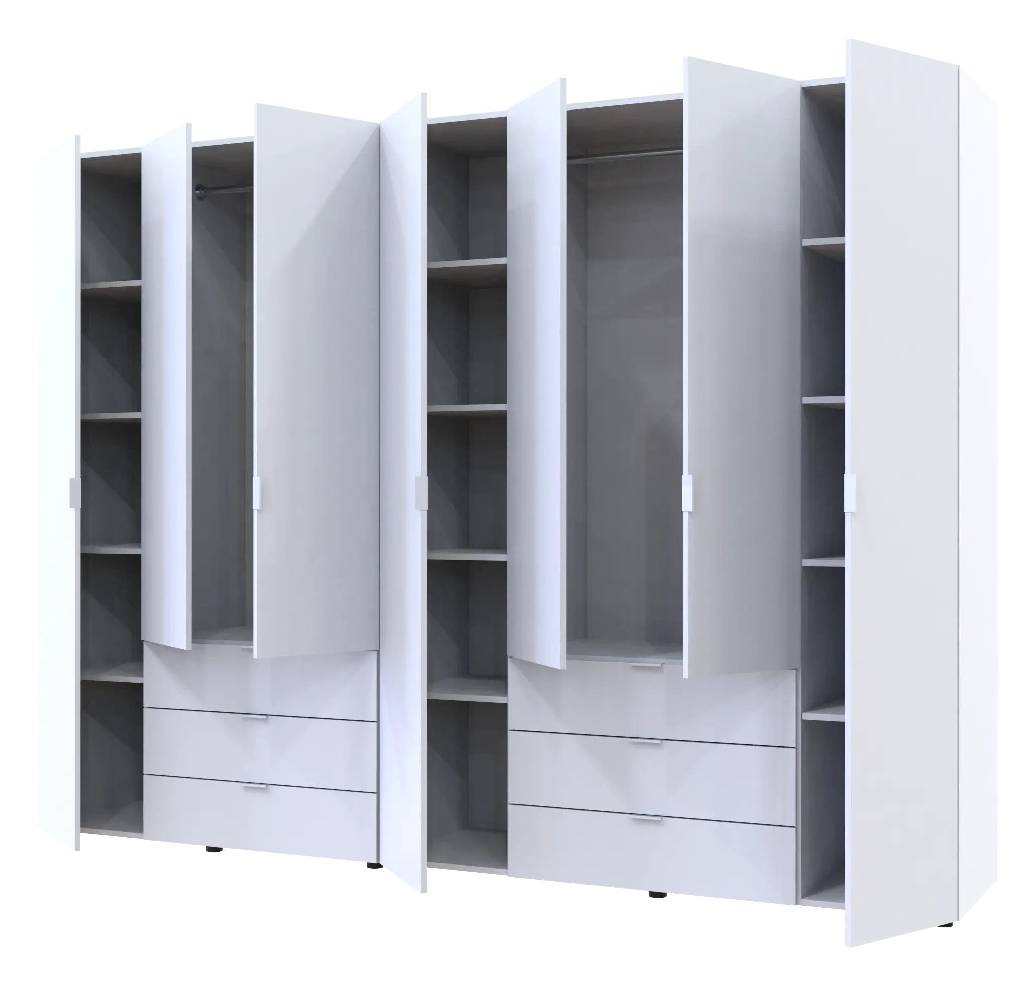 Ваша оселя заслуговує на найкраще! Комплект шаф для одягу Doros Гелар поєднує в собі елегантний дизайн та практичність, що робить його ідеальним вибором для будь-якої спальні. Завдяки своїм розмірам, ці шафи забезпечують достатньо місця для зберігання вашого одягу, взуття та аксесуарів, при цьому зберігаючи простір у кімнаті. Білий колір надає легкості та свіжості, а стильний вигляд доповнить інтер'єр вашого дому.