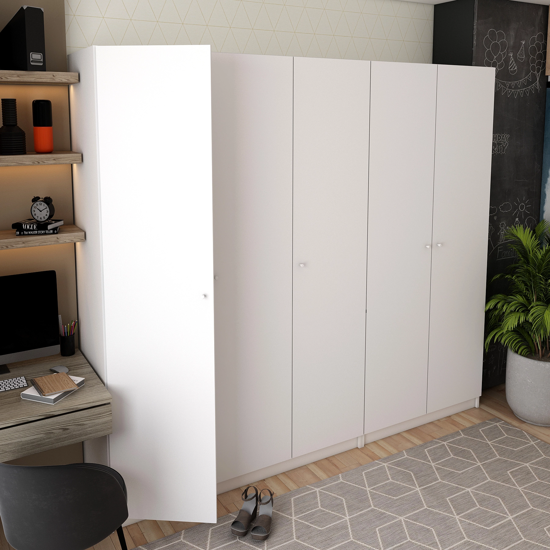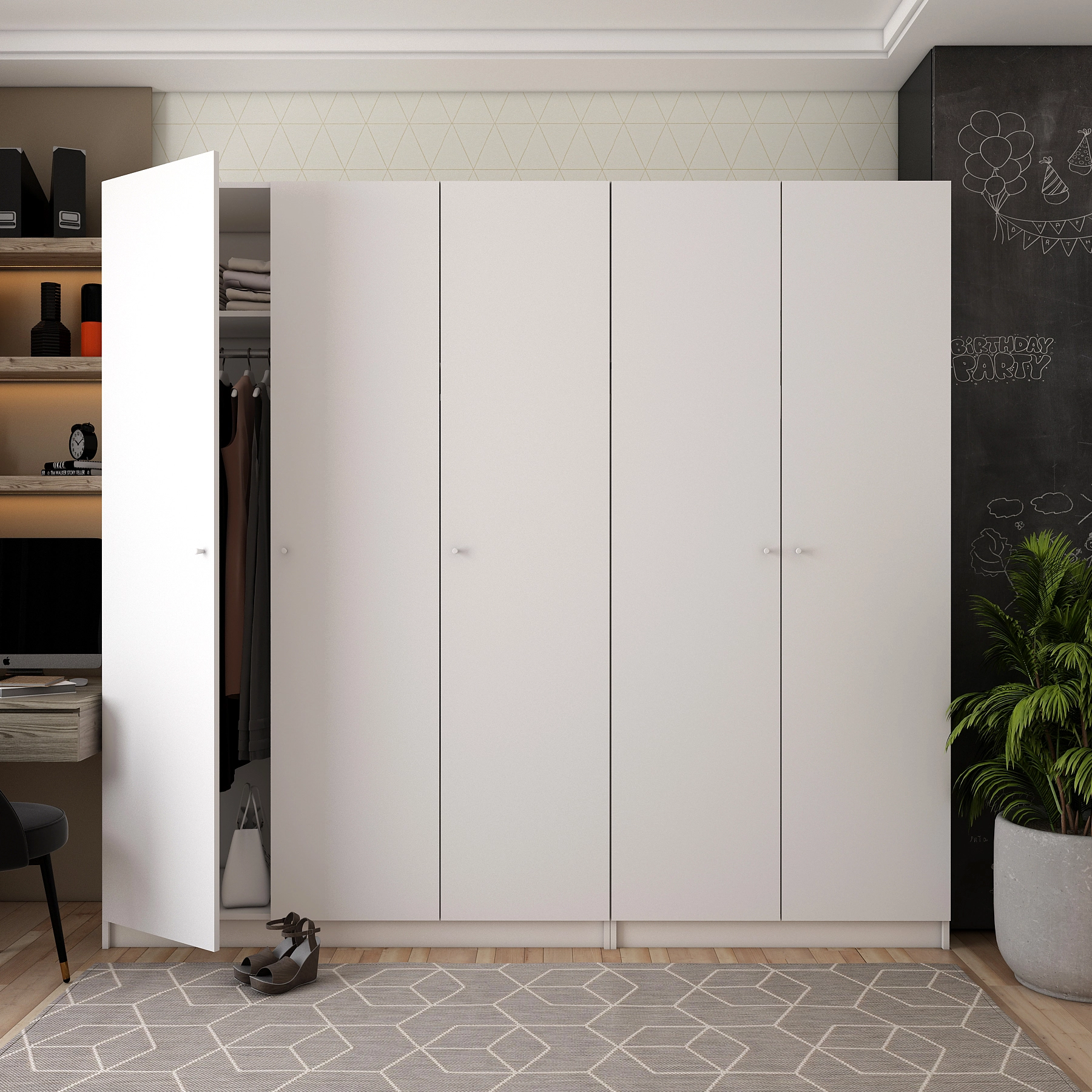 Не втрачайте можливість зробити свій простір більш організованим і затишним! Шафи мають достатній об'єм, що дозволяє зберігати великий обсяг речей, а їх висота та ширина забезпечують комфортний доступ до вашого гардеробу. Оберіть комплект Doros Промо і насолоджуйтесь порядком та стилем у вашій оселі!