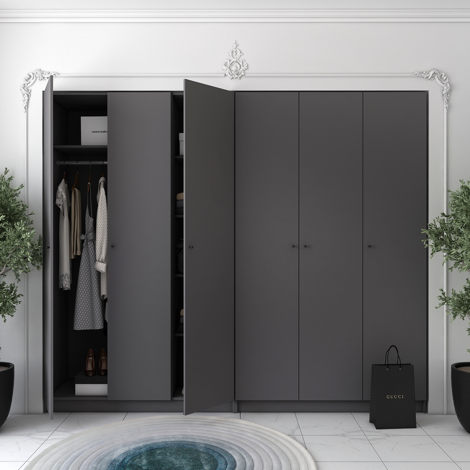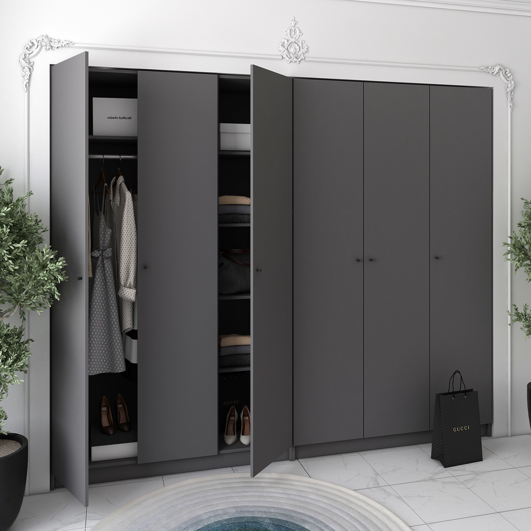 Шукаєте ідеальне рішення для зберігання вашого одягу? Комплект шаф для одягу Doros Промо стане відмінним вибором для будь-якого інтер'єру. Завдяки сучасному дизайну та стильному графітовому кольору, ці шафи не лише забезпечать порядок у вашому гардеробі, а й додадуть елегантності вашій кімнаті. Виготовлені з якісних матеріалів, вони гарантують тривалий термін служби та надійність у використанні.
