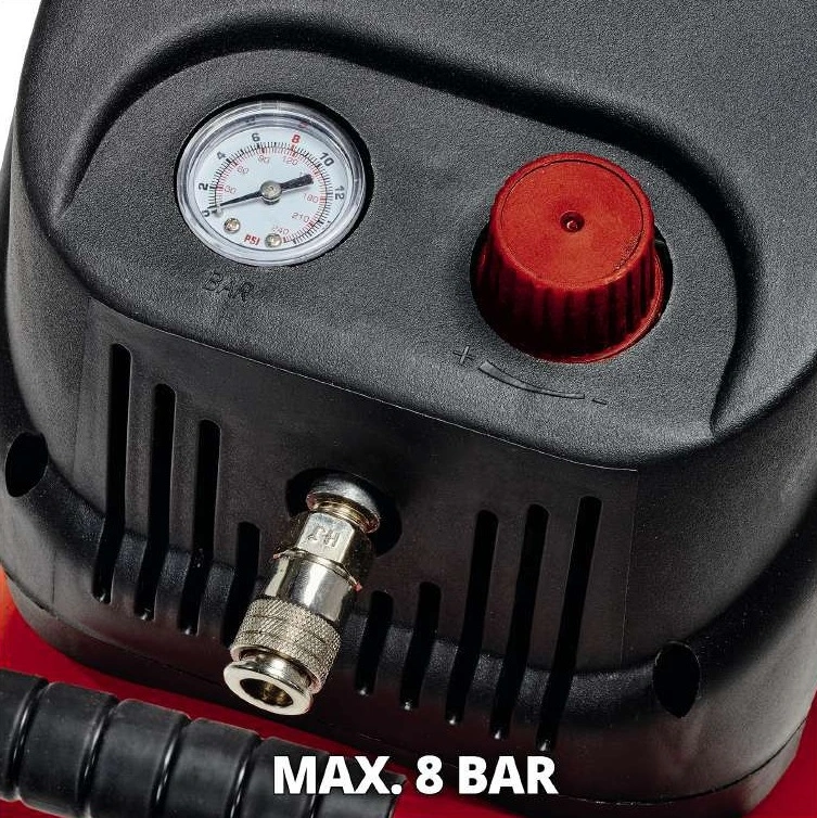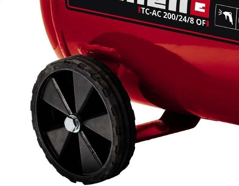 Одноциліндровий безмасляний мобільний компресор Einhell TC-AC 200/24/8 OF з прямим приводом підходить практично для всіх робіт із застосуванням стисненого повітря, особливо для оздоблювальних робіт, розпилення і надування куль і коліс, для робіт з інструментом, що працює від стисненого повітря.