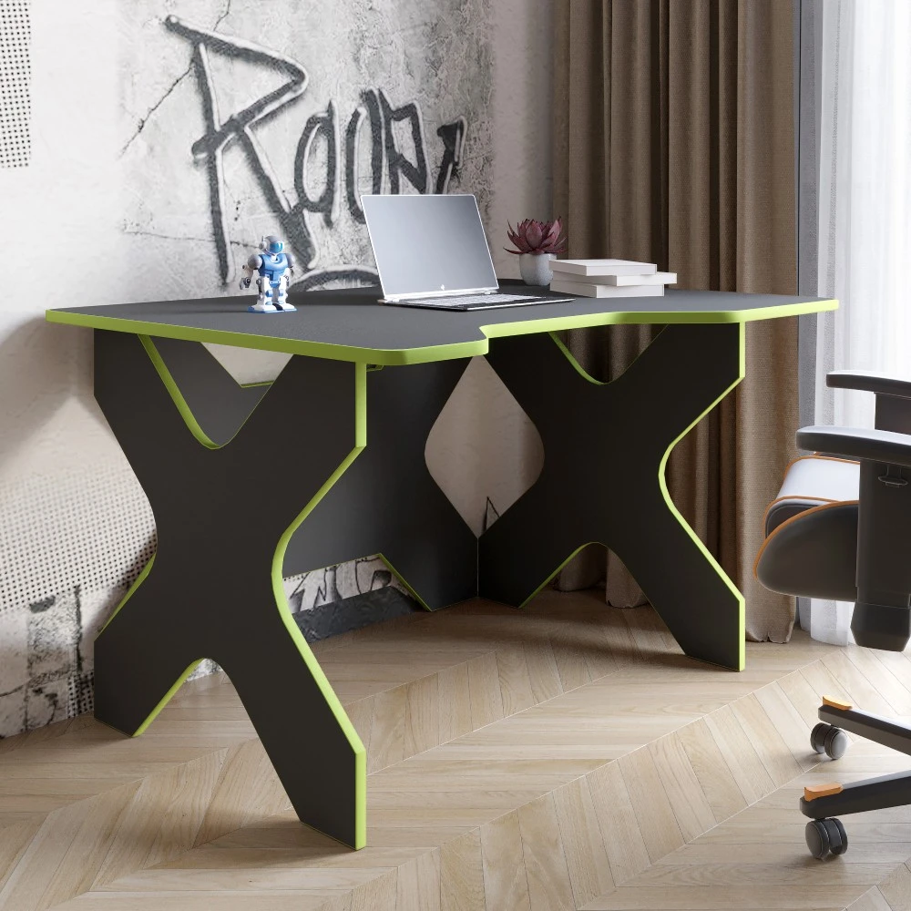 Комп'ютерний стіл LION Донат 120х90х74,5 см Антрацит із зеленою кромкою (LION-041697)