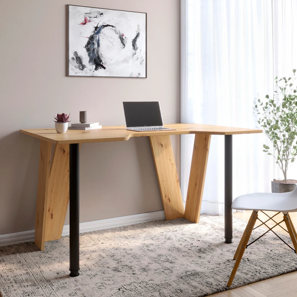 Компьютерный стол LION Квест в цвете Дуб Артизан — это современное и практичное решение для организации рабочего пространства дома или в офисе. Благодаря оптимальным размерам и эргономичной конструкции, он обеспечивает комфортную работу за компьютером или ноутбуком, при этом сохраняя стильный внешний вид.
