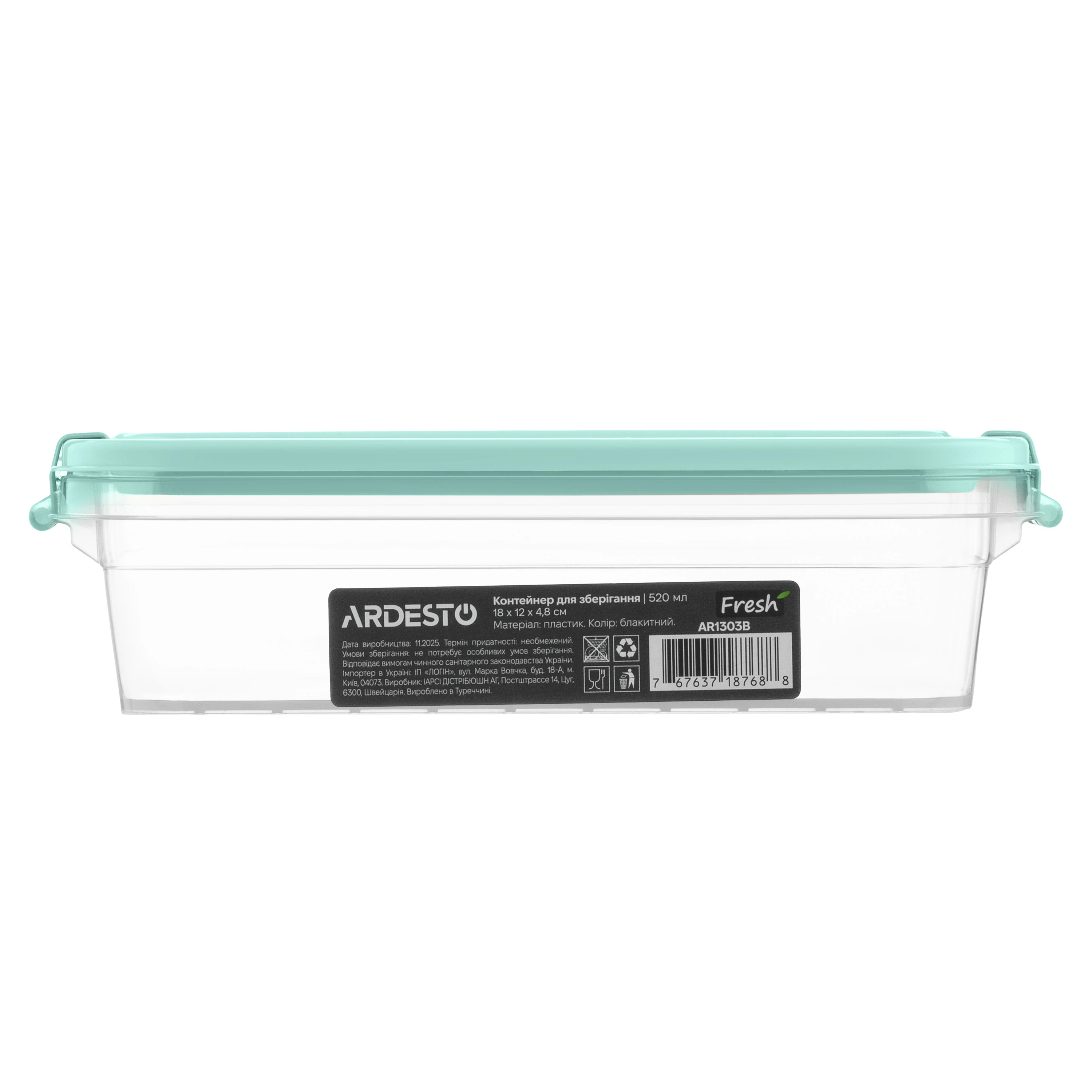 Контейнер для зберігання харчових продуктів ARDESTO Fresh 0.52л, пластик, прямокутна, блакитний
