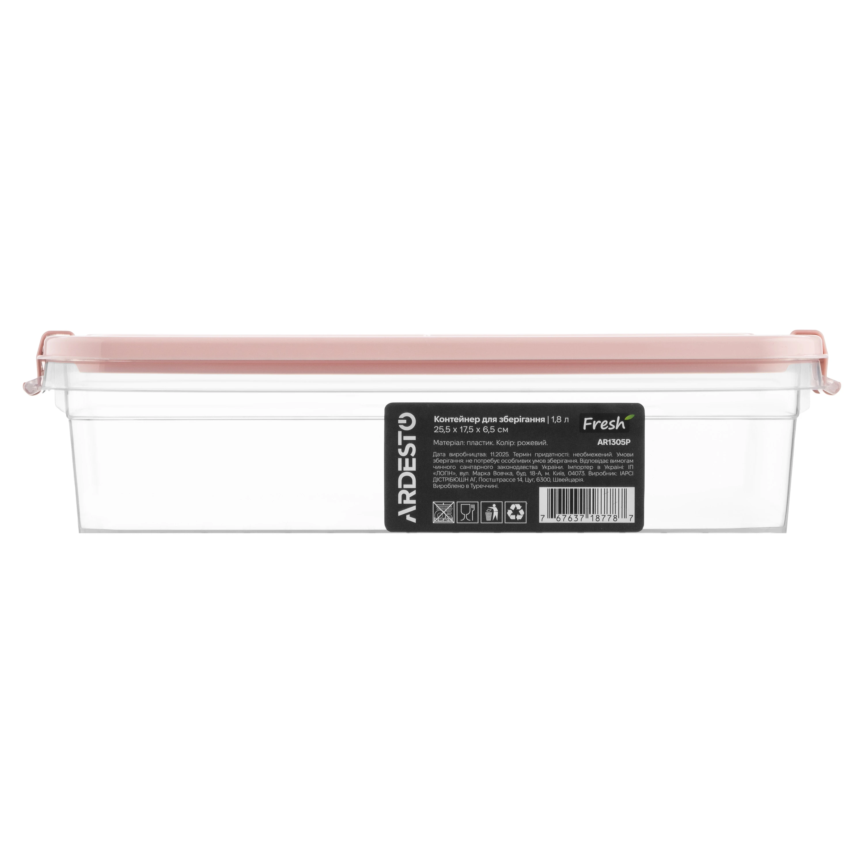 Контейнер для зберігання харчових продуктів ARDESTO Fresh 1.8л, пластик, прямокутна, рожевий