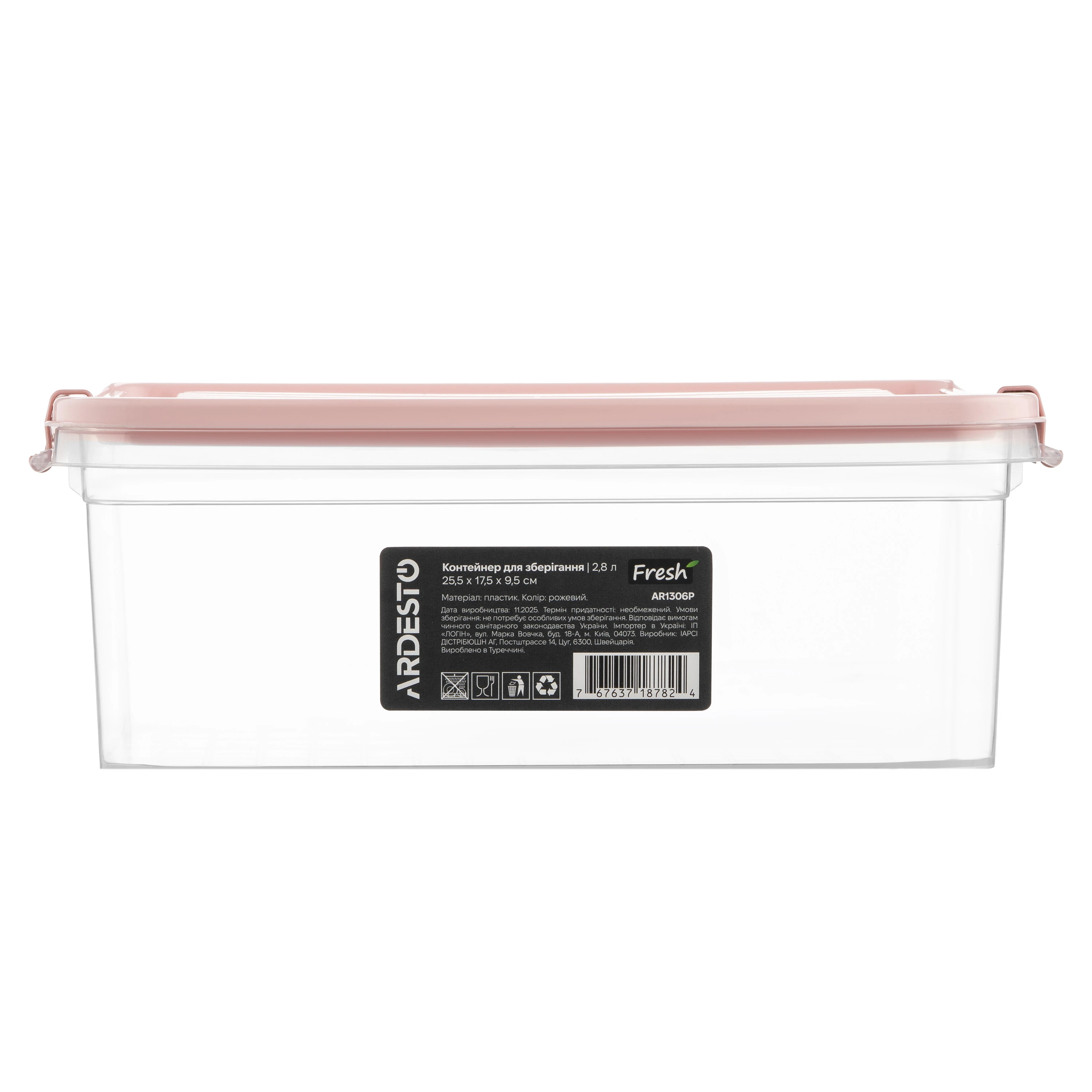 Контейнер для зберігання харчових продуктів ARDESTO Fresh 2.8л, пластик, прямокутна, рожевий
