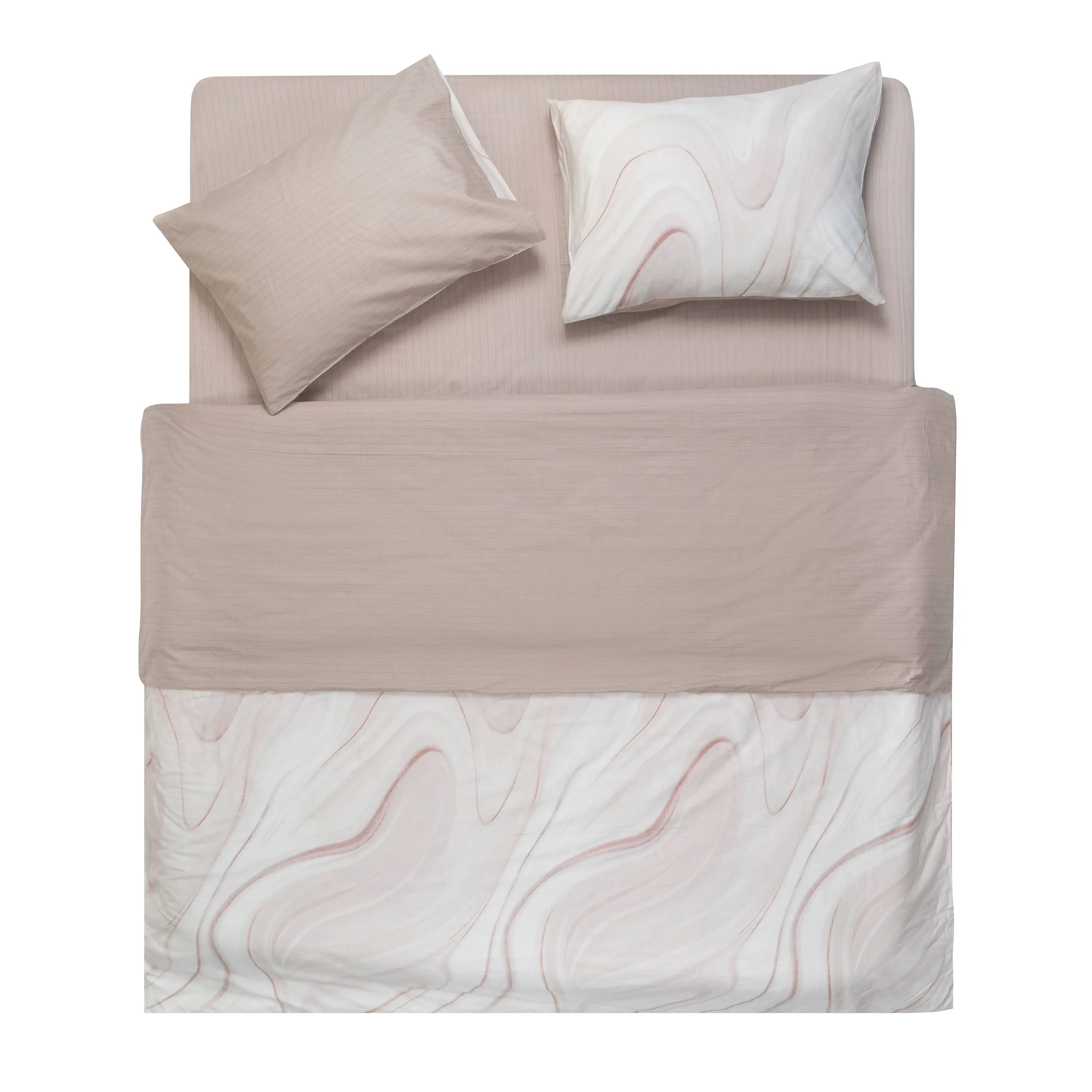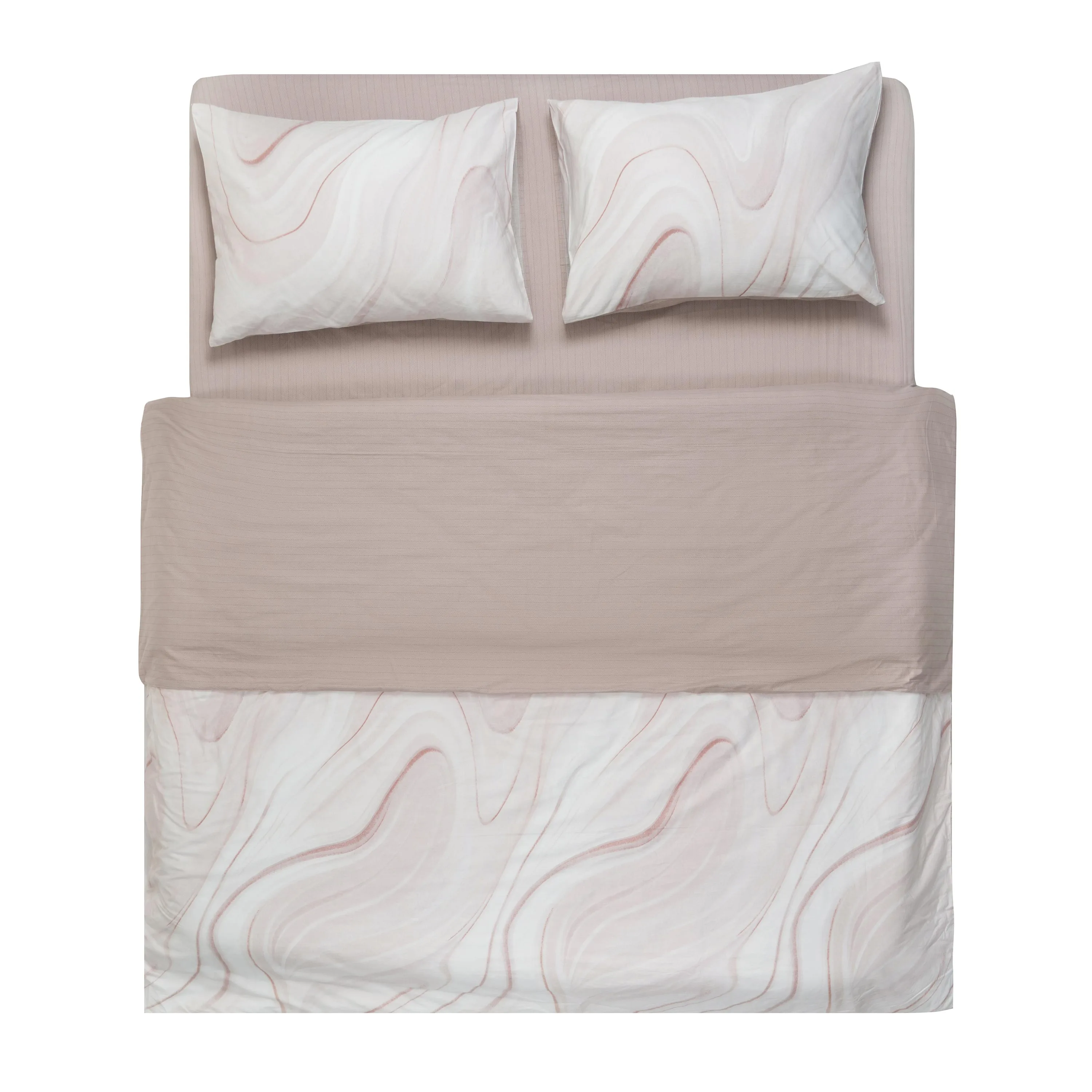 Комплект постільної білизни Gloria – це поєднання витонченого дизайну й безкомпромісної якості. Вироблена зі 100 % бавовняного сатину щільністю 200 ТС, постіль подарує винятковий комфорт і затишок. М’яка тканина ніжно пестить шкіру, забезпечуючи її дихання і створюючи відчуття свіжості та легкості. Дизайн із вишуканим мармуровим візерунком у бежевих відтінках додає спальному місцю елегантності та спокою.