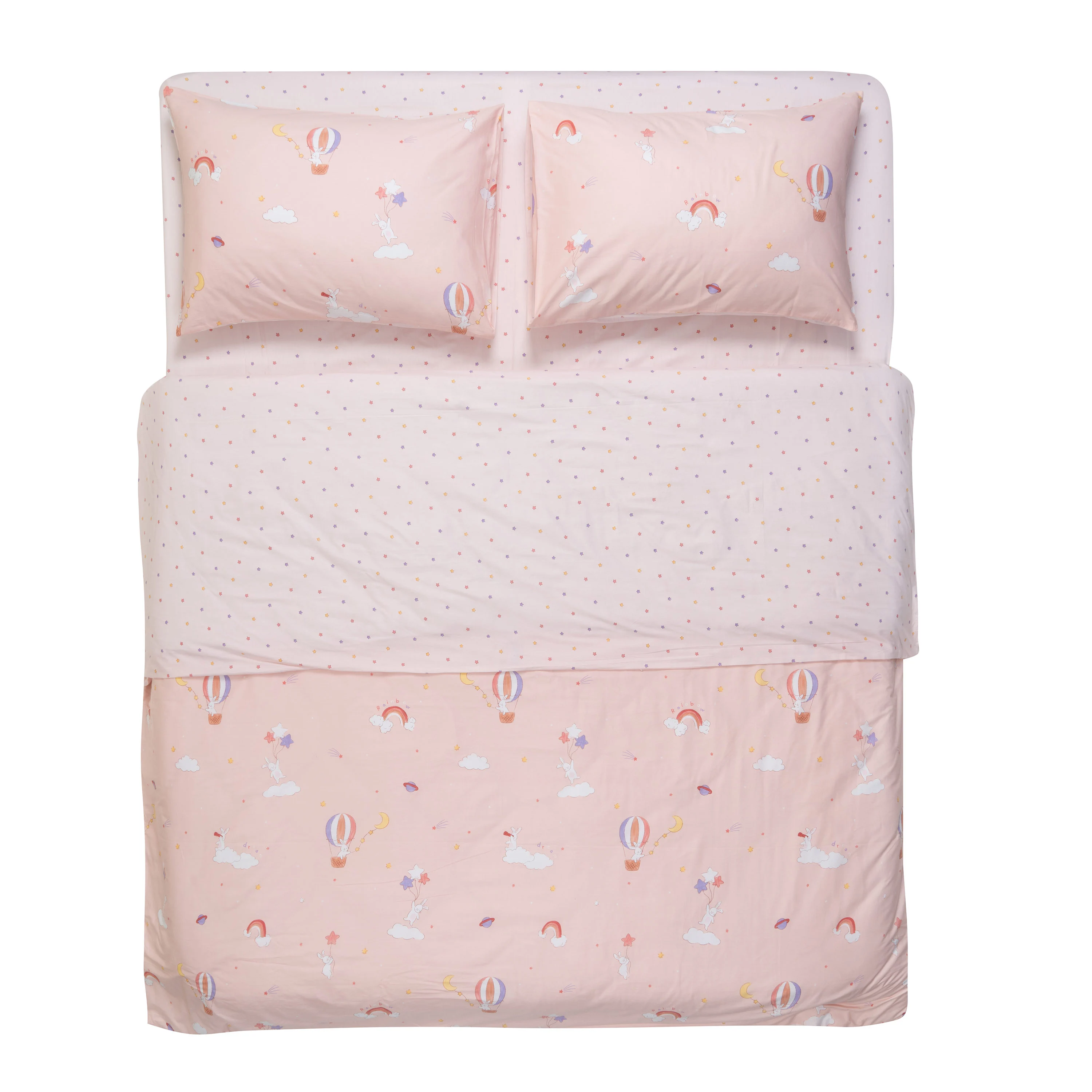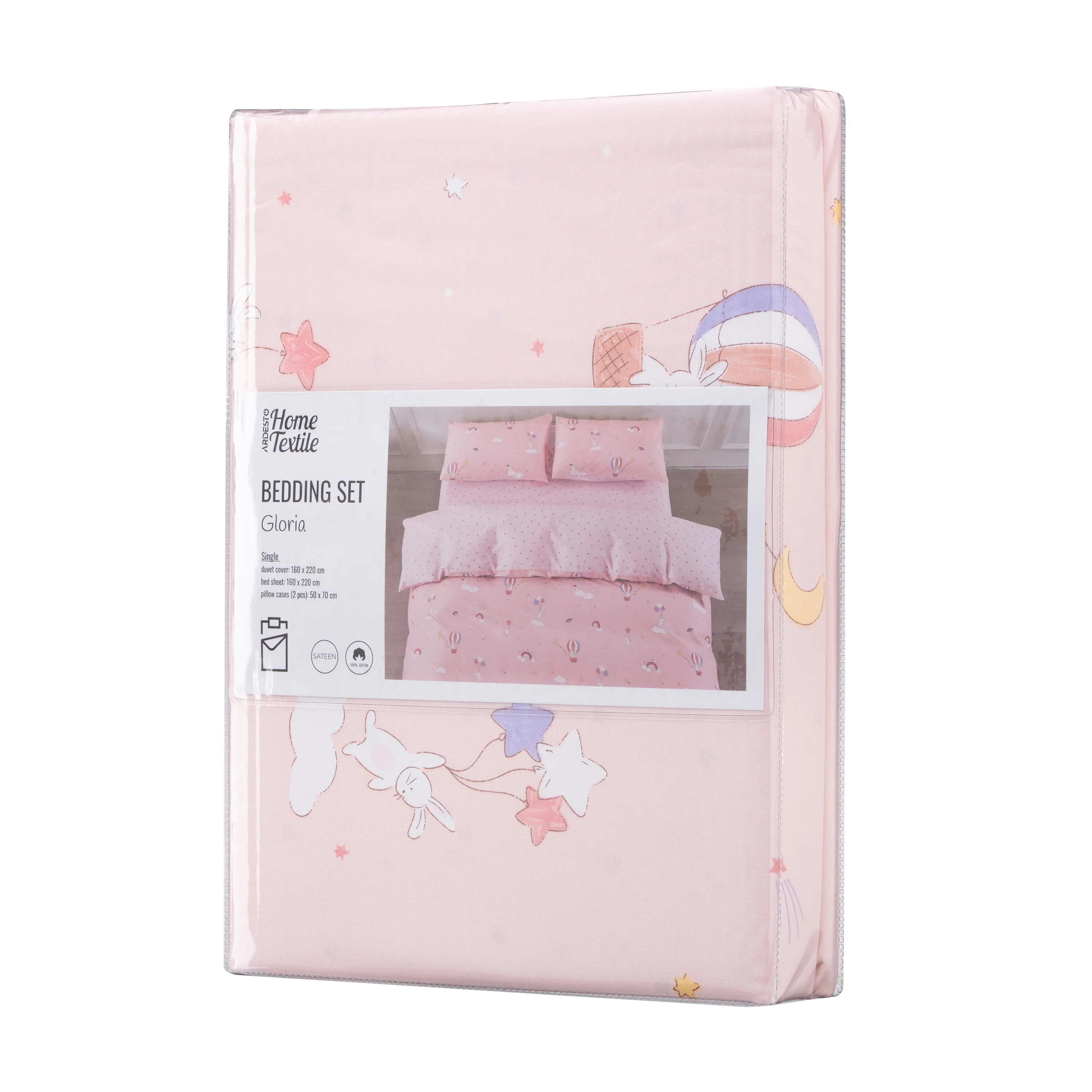 Комплект постільної білизни Gloria – це поєднання витонченого дизайну й безкомпромісної якості. Вироблена зі 100 % бавовняного сатину щільністю 200 ТС, постіль подарує винятковий комфорт і затишок. М’яка тканина ніжно пестить шкіру, забезпечуючи її дихання і створюючи відчуття свіжості та легкості. Дизайн із милим принтом додає спальному місцю особливого шарму.