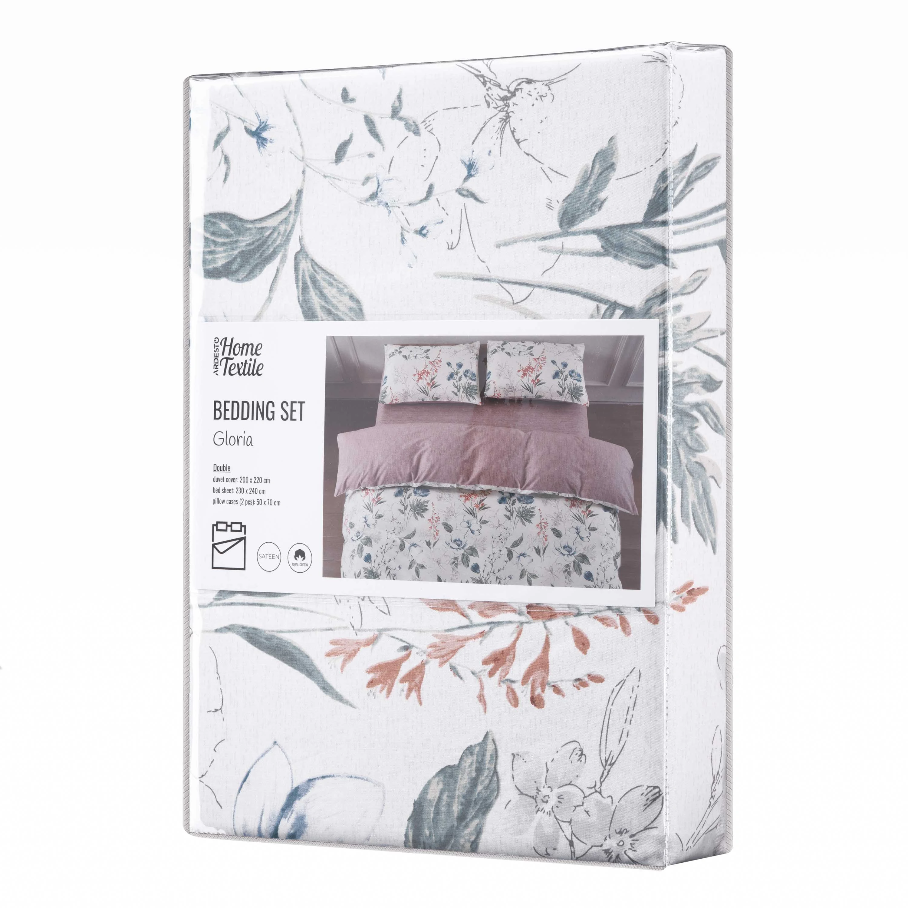 Комплект постільної білизни Gloria – це поєднання витонченого дизайну й безкомпромісної якості. Вироблена зі 100 % бавовняного сатину щільністю 200 ТС, постіль подарує винятковий комфорт і затишок. М’яка тканина ніжно пестить шкіру, забезпечуючи її дихання і створюючи відчуття свіжості та легкості. Розкішний дизайн із квітковими мотивами додає спальному місцю елегантності та спокою.