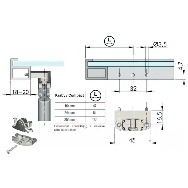 Це кріплення стане ідеальним вибором для встановлення газових ліфтів KRABY на фасади з алюмінієвого профілю, забезпечуючи плавну і стабільну роботу меблевих конструкцій.