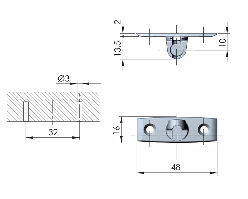 Кріплення для газового ліфта K12 від Italiana Ferramenta забезпечує надійне з'єднання механізму з фасадом, гарантуючи стабільну та довговічну роботу системи відкривання.