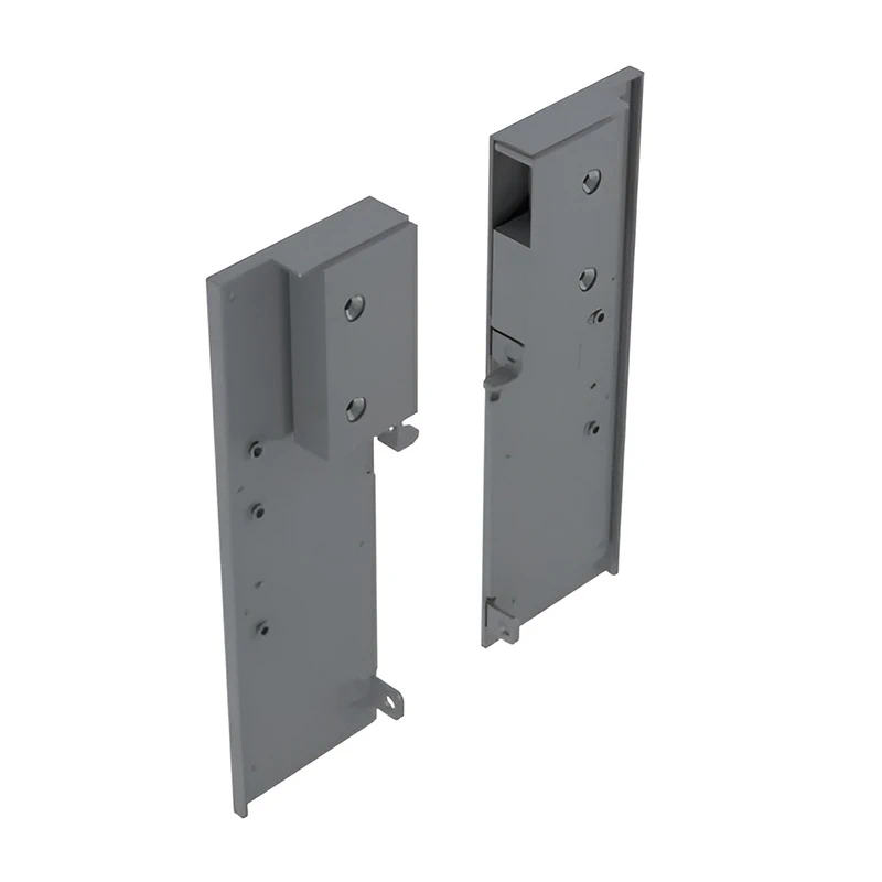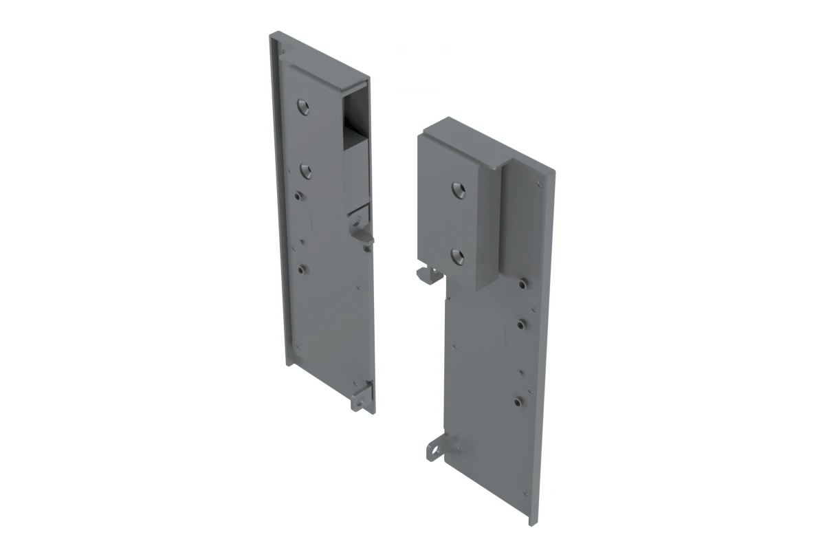 Кріплення передньої панелі GTV AXIS PRO H-116 мм, середнє (PB-AXISPRO-WEWMOCB), антрацит — це спеціалізований елемент для з'єднання фасаду з боковинами у висувних системах GTV AXIS PRO середньої висоти. Виріб забезпечує міцне, точне та естетичне кріплення передньої панелі, дозволяючи зручно регулювати положення фасаду після монтажу.