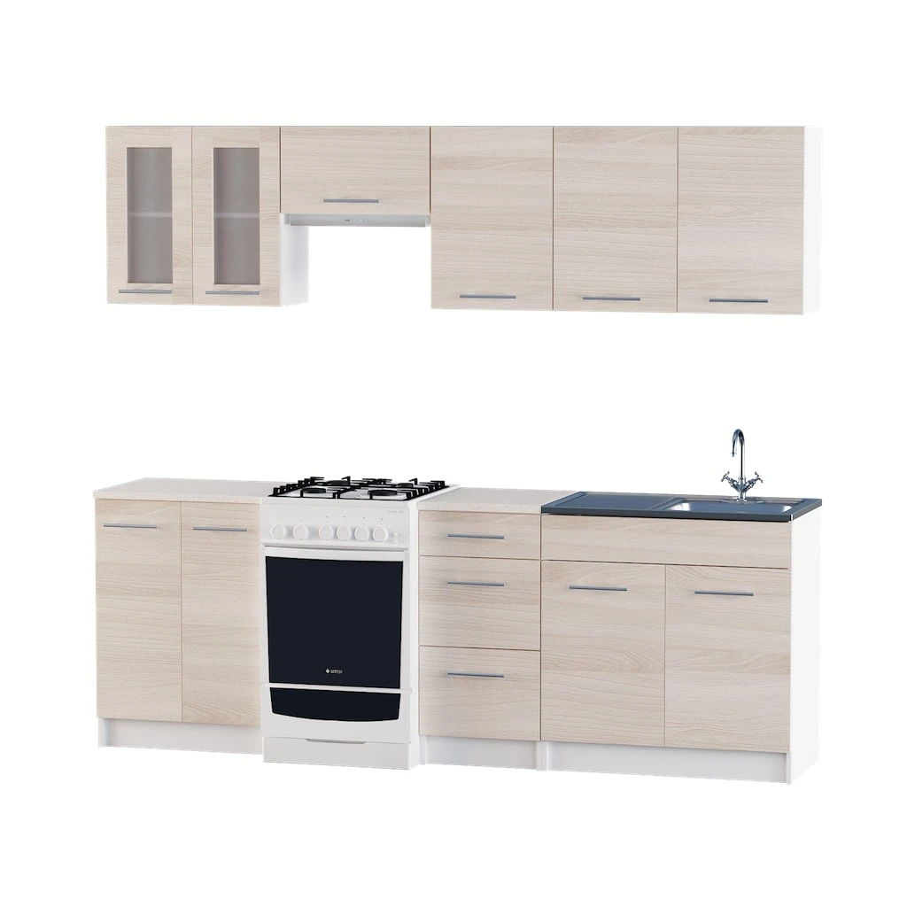 Кухня модульна Еверест Еко набір №6 ясень шимо світлий+білий 2,3 м (DTM-2937)